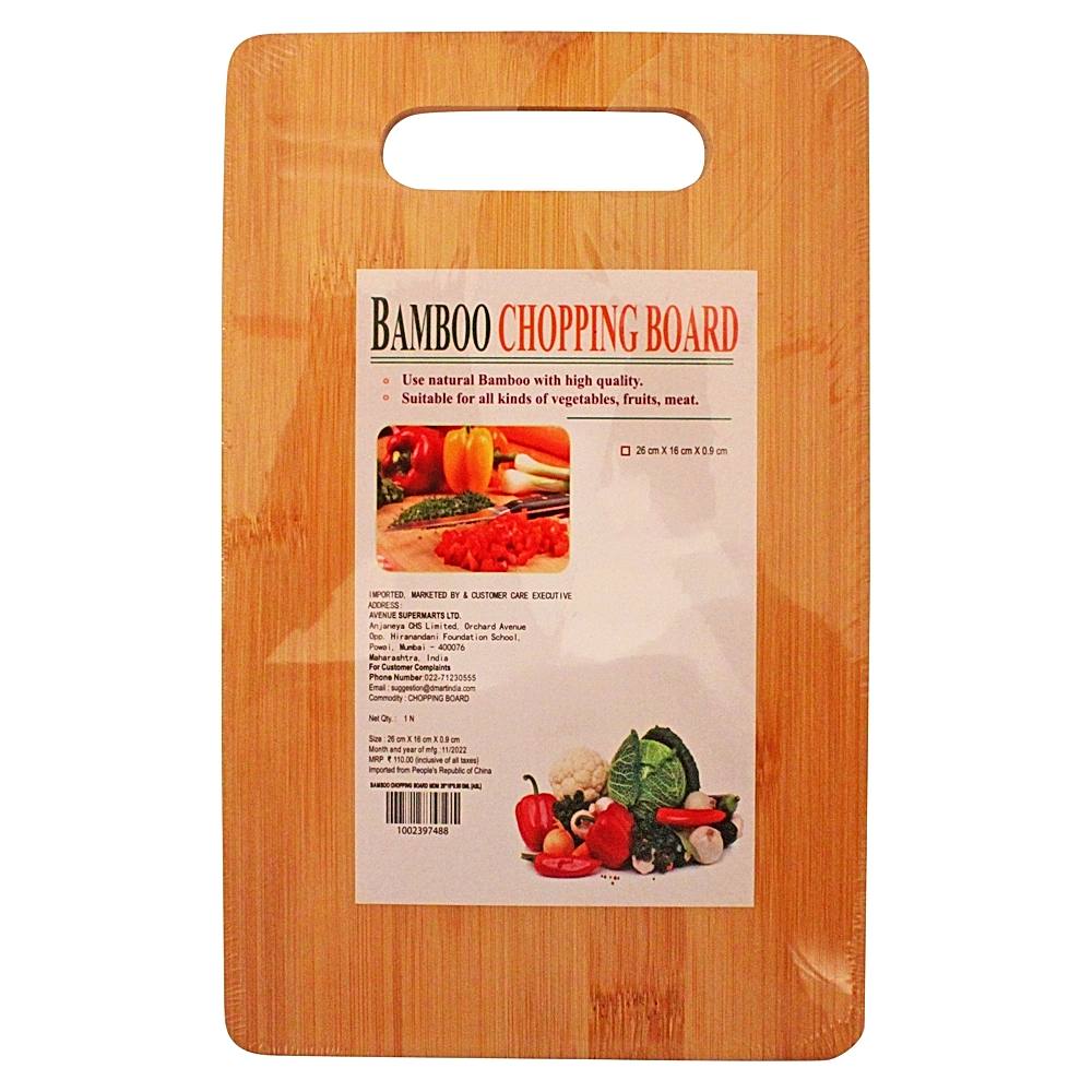 Product Details - Type : Chopping Board - Material : Bamboo - Weight : 280.6 gms - Dimensions (LXWXH) : 26 cm x 16 cm x 0.9 cm Features - Made from high quality natural bamboo - Suitable for all kinds of fruits & vegetables - Easy to maintain - Durable Care Instructions - Clean after every use - Use soapy water and a scrub brush to clean and remove any stains - Avoid exposing the bamboo chopping board to extreme temperatures - Use both sides to extend its life