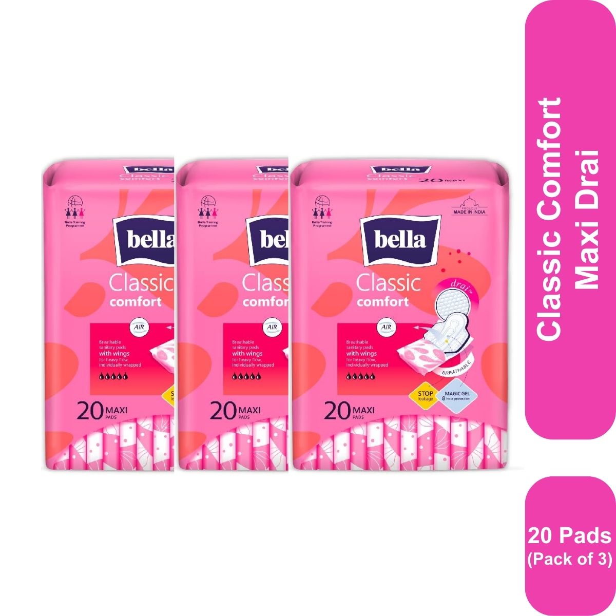 Bella Classic Comfort Maxi Drai Sanitary Napkins 20 Pcs (Pack of 3)