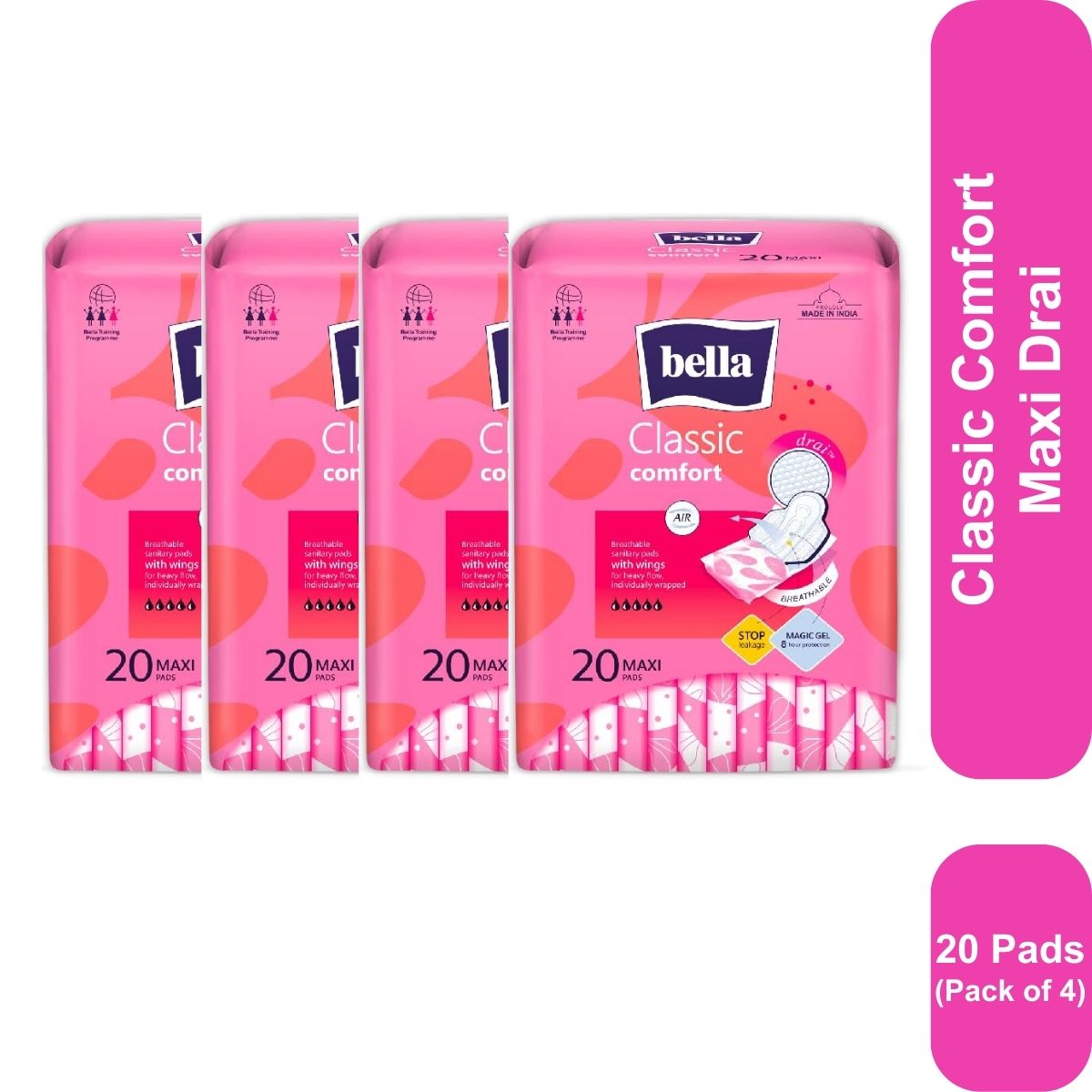 Bella Classic Comfort Maxi Drai Sanitary Napkins 20 Pcs (Pack of 4)