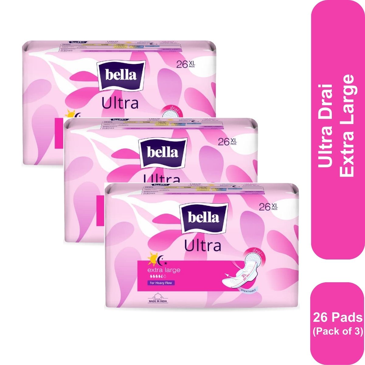 Bella Ultra Drai Sanitary Napkins Extra Large 26 Pcs (Pack of 3)