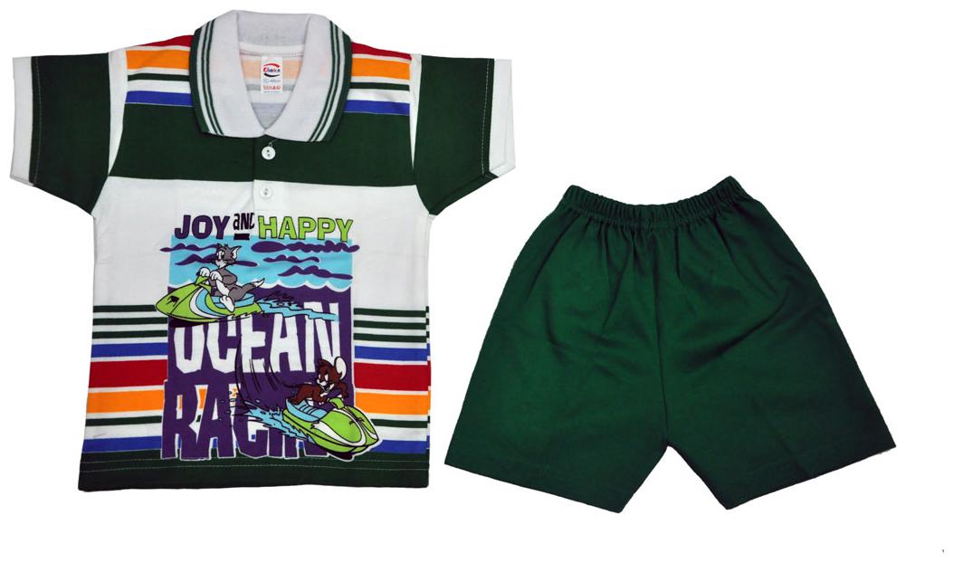 Bellegirl 100% Cotton Babasuit With Collar Green 6-12M