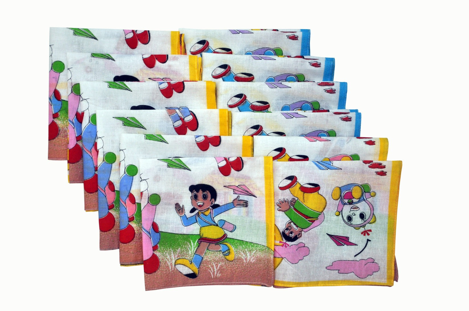 Bellegirl Kids White Color Cartoon Print Regular Handkerchief 12Pcs