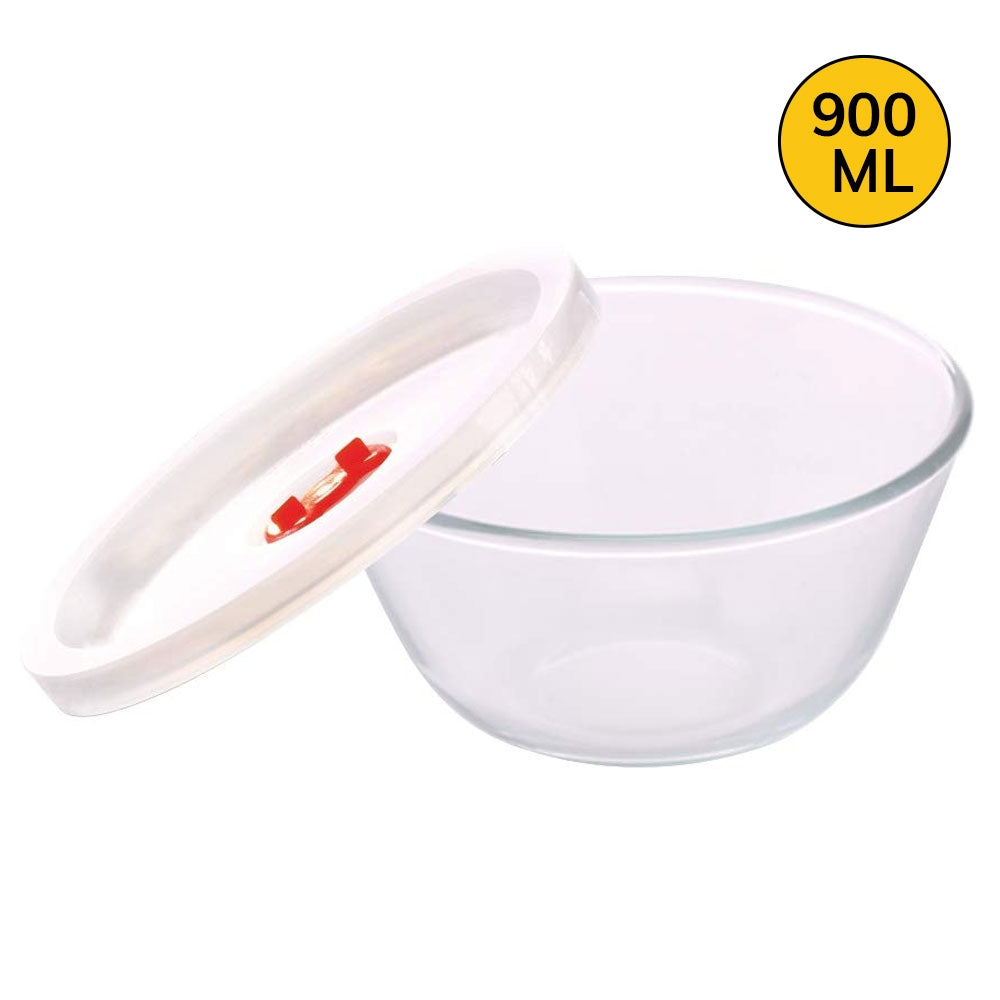 Borosil Glass Mixing Bowl with Plastic Lid 900 ml