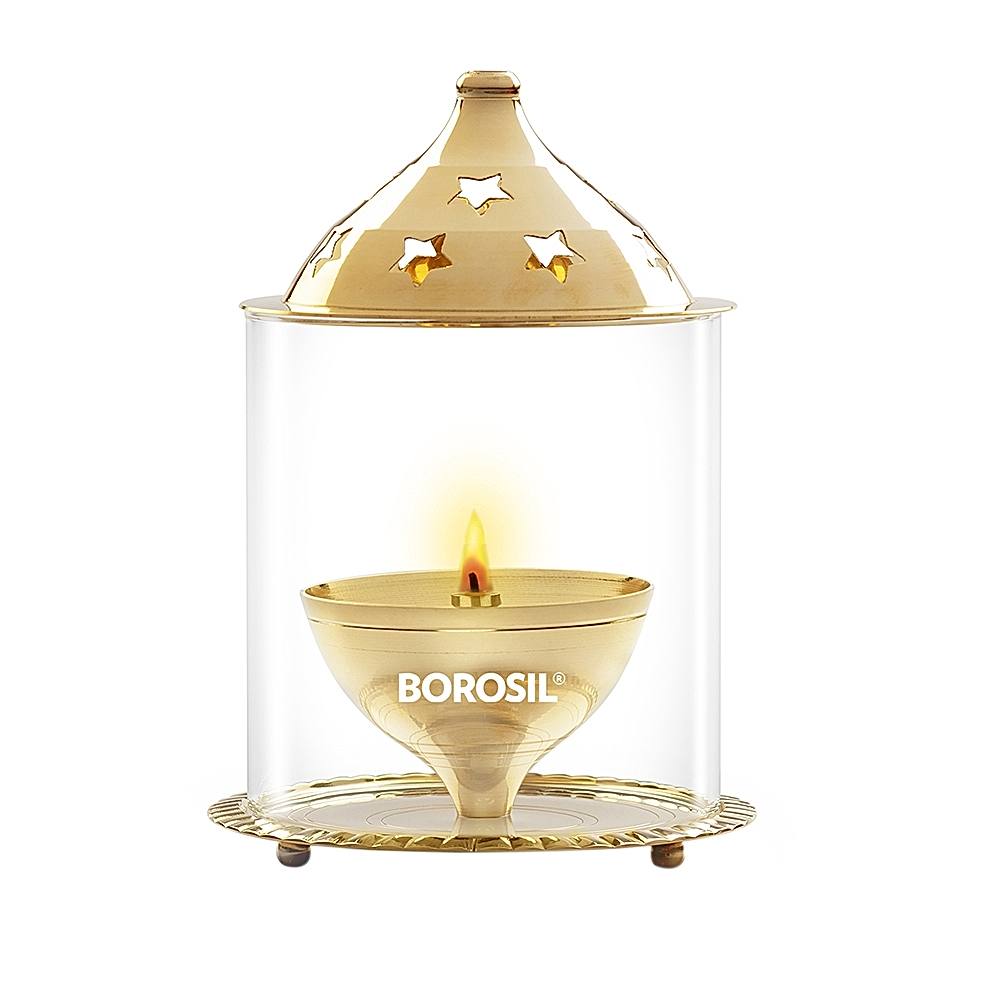 Description - Material : Brass - Type : Akhand Diya - Colour : Golden - Weight : 452 gms - Dimension : 30 mm X 30 mm X 70 mm - Size : Large Key Features Made of Borosil's unique borosilicate glass composition, the Akhand Diya: - Does not get hot even after long hours of repeated burning - Has increased clarity and emits brighter light due to the high quality of glass - Unlike regular glass, will not crack even after repeated usage - Is designed to allow easy cleaning and refilling of oil - Is extra resistant to thermal shock - Is designed to allow easy cleaning and refilling of oil - Has an economical cost of burning per hour - Is safer than an open flamed diya, and can be used even when the fan is on Pack Contents - Brass Borosil Akhand Diya Large : 1 Unit Care Instructions - Clean the glass with a sponge and liquid soap - Wash the diya with Pitambari cleaning powder & wipe with a dry cloth Freebie - Free : Cotton wicks & Pitambari