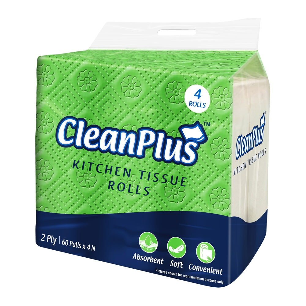 Product Highlights: - Absorbent - Soft - Convenient Product Specifications : Generic Category : Tissue Paper Brand : CleanPlus Net Quantity : 4 Rolls Length : 22 cm Width : 21 cm Type : Kitchen Tissue Material : Paper Ply : 2 Ply Dry Tissue : Yes Wet Tissue : No Overview: CleanPlus tissues are soft, absorbent and convenient for your daily needs
