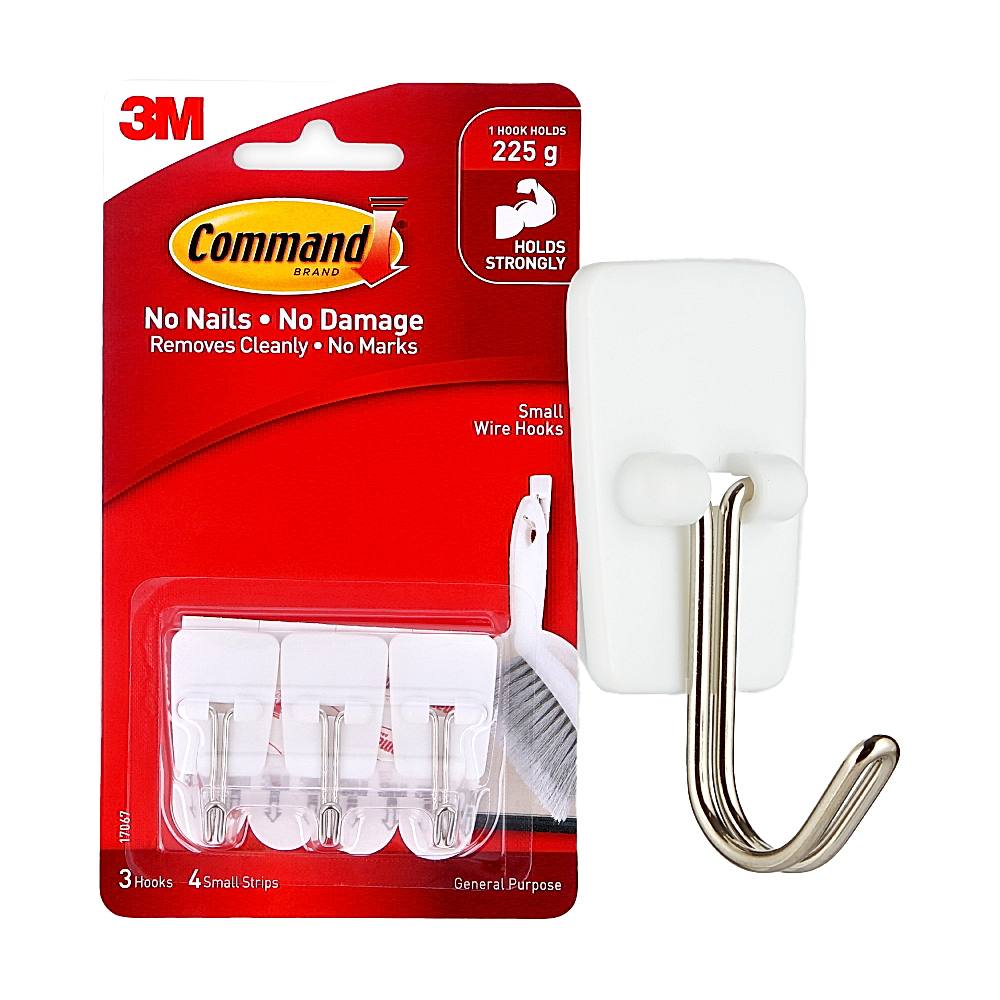 Key Features - 3M Command Small Wire Hooks have strong adhesive strips that stick well onto most flat surfaces - Each hook can support an item weighing up to 225 gms - These sticky hooks are also removed cleanly, so you can move your things around easily, without damaging the walls.
