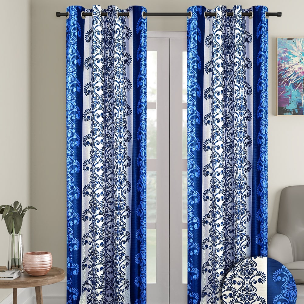 Overview - Type : Door Curtain - Colour : Blue - Pattern : ABST - Size : 48 x 84 Inches - Material : 100% Polyester - GSM : 130 - Fitting : 8 Plastic Eyelets Care Instructions - Wash Type : Hand Wash or Machine wash. Do not soak in water for long time. - Bleach : Do not Bleach or use strong detergent - Dark Colours: Wash Dark Colours separately - Dry Clean : Do not Dry Clean - Drying : Do not tumble/wring Dry - Iron : Iron on mild heat Note : The mentioned price is for one curtain i.e. 1 piece. However, for display purpose 2 curtains are shown in the image. We suggest that 2 curtains should be purchased. Pack Contents - Cortina Stripe Door Curtain - Coffee : 1 Unit