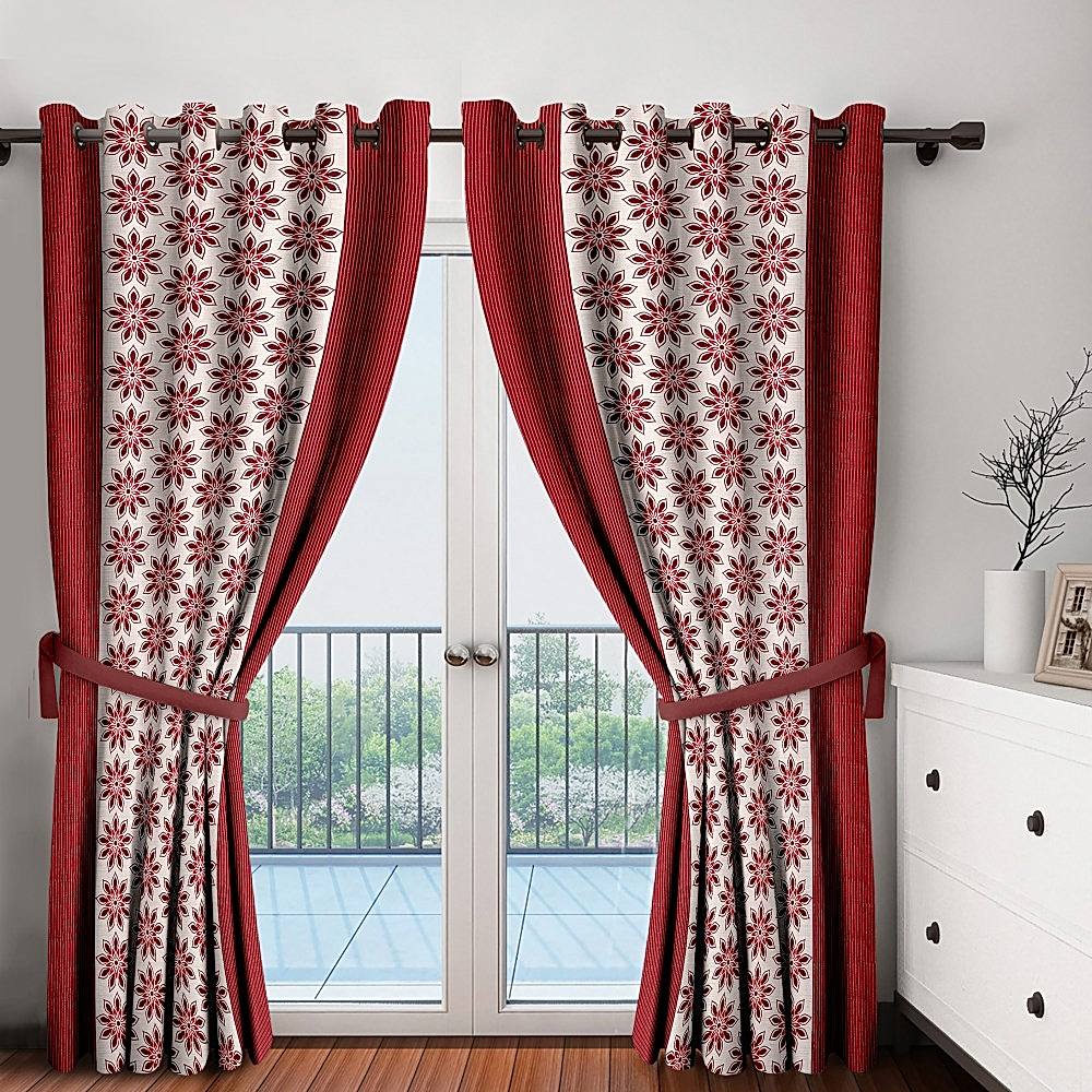 Overview - Type : Door Curtain - Colour : Maroon - Pattern : Crystal - Size : 48 x 84 Inches - Material : 100% Polyester - GSM : 130 - Fitting : 8 Plastic Eyelets Care Instructions - Wash Type : Hand Wash or Machine wash. Do not soak in water for long time. - Bleach : Do not Bleach or use strong detergent - Dark Colours: Wash Dark Colours separately - Dry Clean : Do not Dry Clean - Drying : Do not tumble/wring Dry - Iron : Iron on mild heat Note : The mentioned price is for one curtain i.e. 1 piece. However, for display purpose 2 curtains are shown in the image. We suggest that 2 curtains should be purchased. Pack Contents - Cortina Crystal Door Curtain - Maroon : 1 Unit