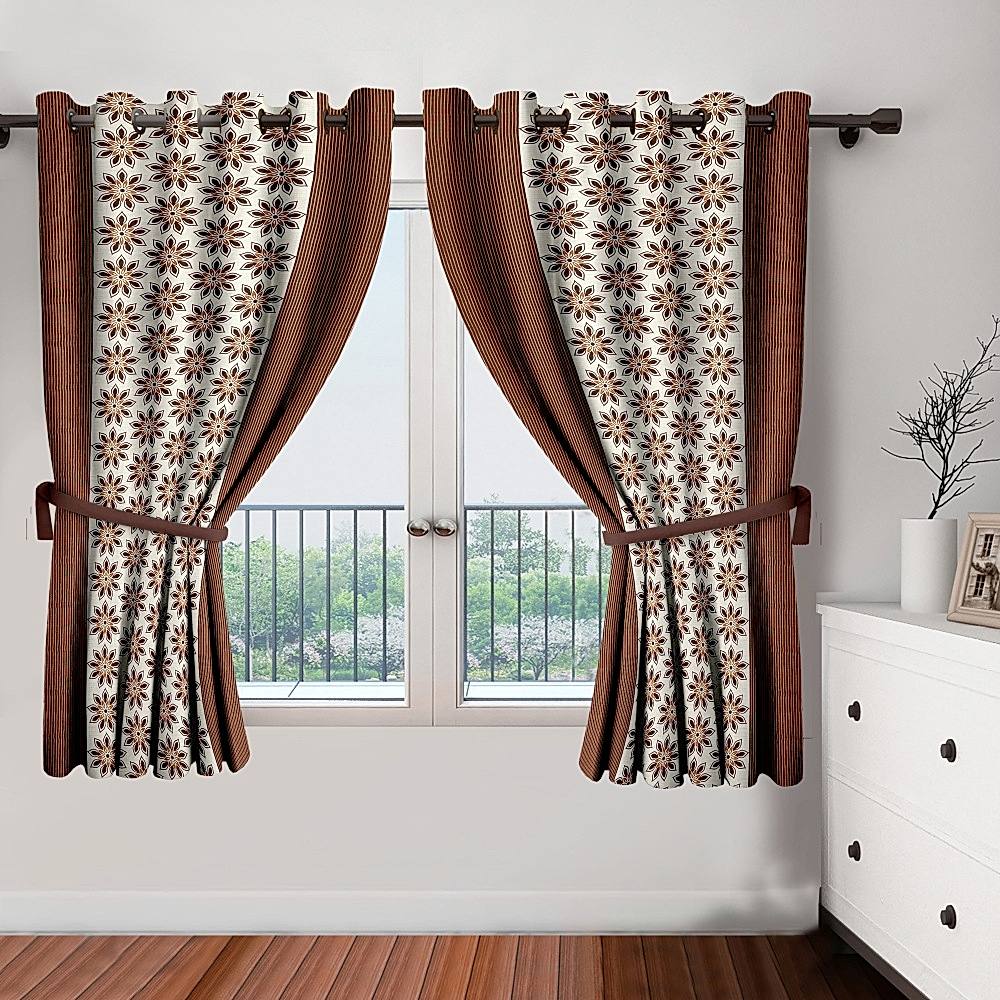 Overview - Type : Window Curtain - Colour : Coffee - Pattern : Crystal - Size : 48 x 60 Inches - Material : 100% Polyester - GSM : 130 - Fitting : 8 Plastic Eyelets Care Instructions - Wash Type : Hand Wash or Machine wash. Do not soak in water for long time. - Bleach : Do not Bleach or use strong detergent - Dark Colours: Wash Dark Colours separately - Dry Clean : Do not Dry Clean - Drying : Do not tumble/wring Dry - Iron : Iron on mild heat Note : The mentioned price is for one curtain i.e. 1 piece. However, for display purpose 2 curtains are shown in the image. We suggest that 2 curtains should be purchased. Pack Contents - Cortina Crystal Window Curtain - Coffee : 1 Unit