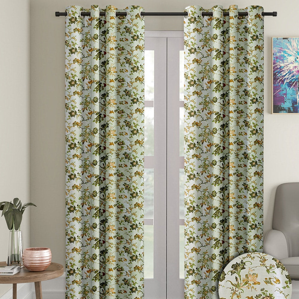 Cortina Leaf Printed 7 Feet Door Curtain - Brown 115x213 cm