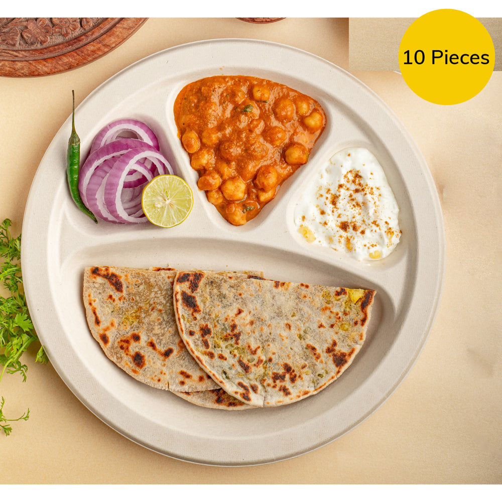 Disposable Bagasse Plates - 27.5 cms 4 Compartments 10 Pieces