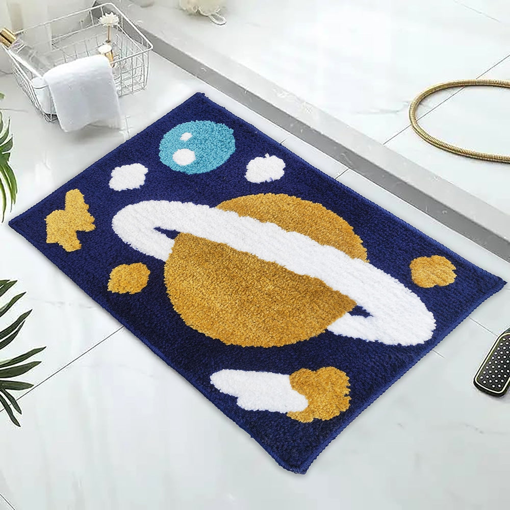 Product Highlights - Space themed, Blue Floor Mat - Shape - Rectangle, Size - 40x60 cm - Material: Micro Fibre - Decorative and Elegant Look - Traps Moisture and Dust Key Features: - Adds warmth and vibrancy to any room. - Versatile use as carpet, rug, or runner. - Ideal for living rooms, bedrooms, and hallways. - Compact size fits various spaces. - Durable construction for long-lasting use.