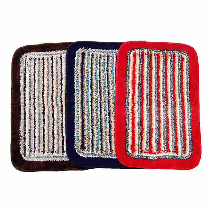 - Pattern : Rally Bathmat - Colour : Maroon/Brown/Blue - Size : 38 cms x 58 cms - Pack Contents : 3 Bathmats - Shape : Rectangle - Material : Micro Fiber - Machine Washable : No Dimensions : - Width : 38 cms - Depth : 58 cms
