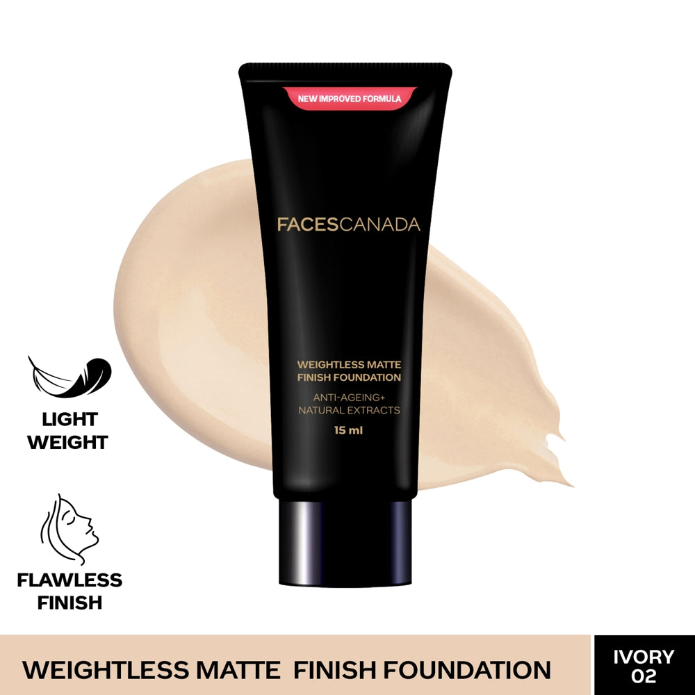 - Faces Canada Weightless Matte Finish Foundation is a very lightweight and comfortable foundation.