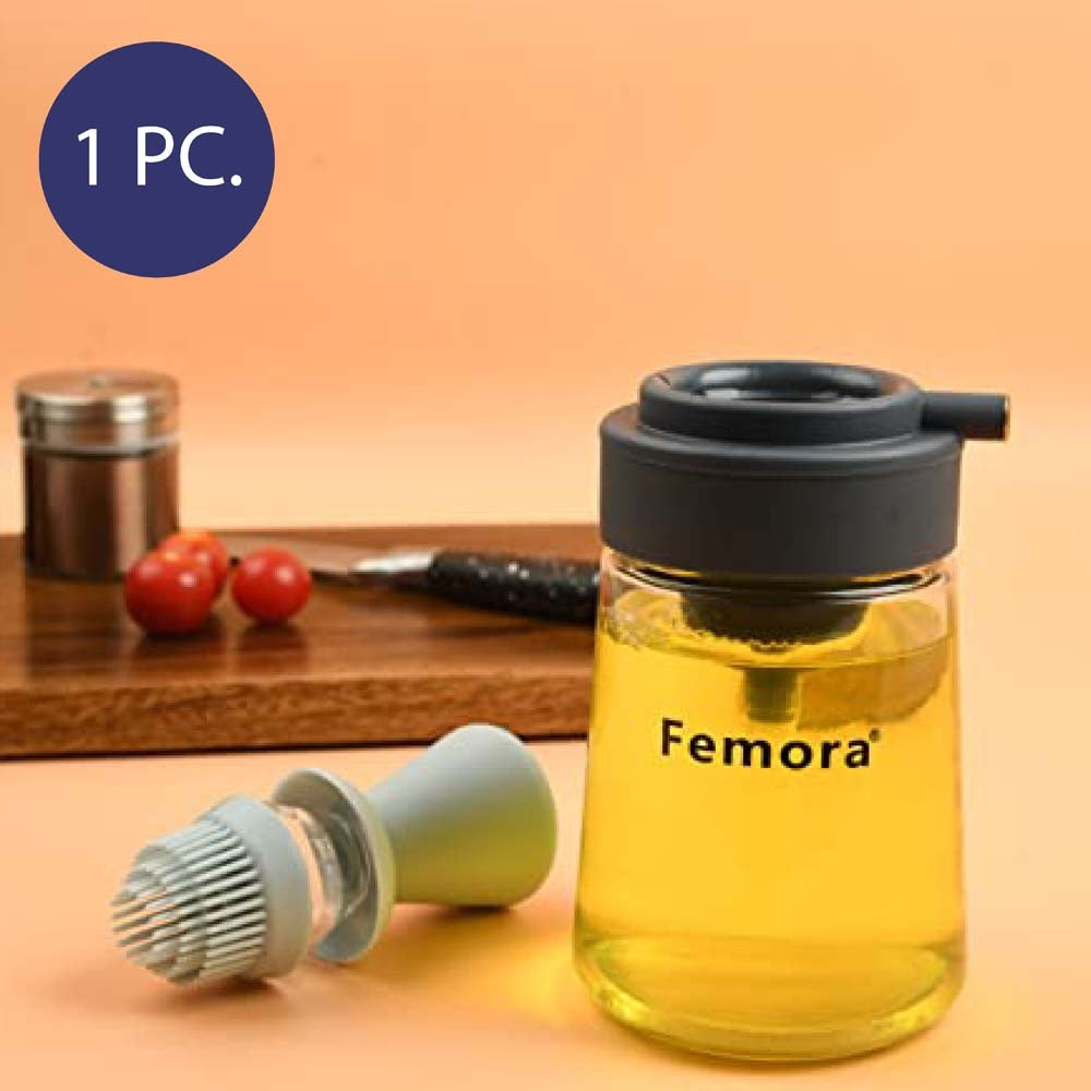 Femora Oil Dispenser Glass Bottle With Grey Silicone Brush 350 ml