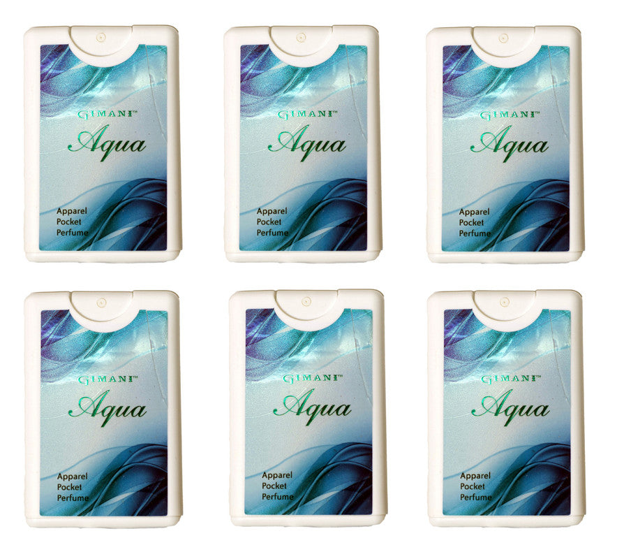 GIMANIåÊAqua Pocket Perfume 20 MLåÊis a fresh, seductive fragrance for men & Women.åÊThe energy radiates from the ultimateåÊ fragrance line.åÊThe power and beauty of the sea inspired him.åÊAt the top, citrusåÊnotes of mandarin and orange are combined with accords of penetratingåÊoil.åÊFloral extracts of cotton and lavender form a special mix with seaweed in the heart.åÊAt the base, amber and woody notes combine with the green, spicy character of clayåÊsage.