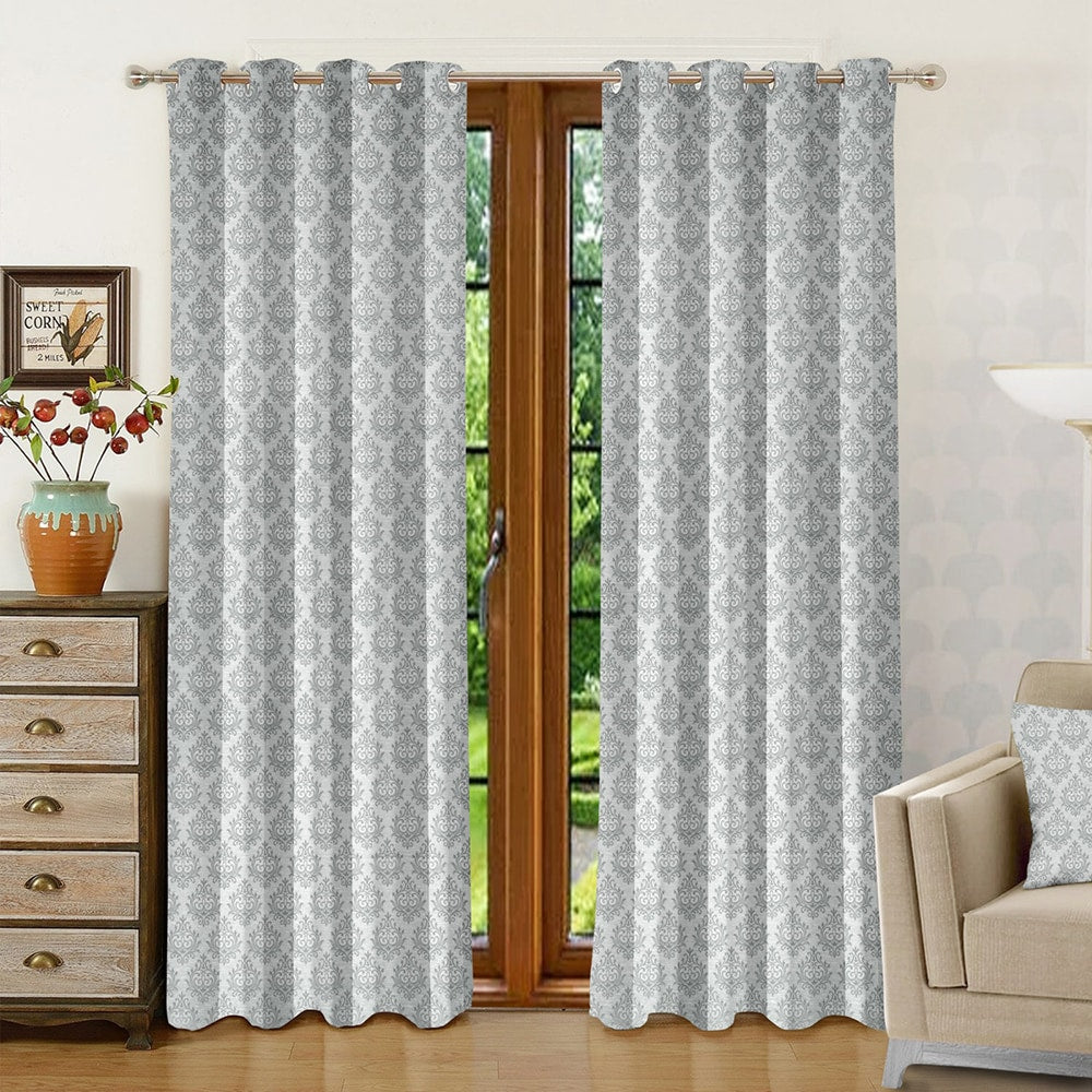 Product Highlights: - Elegant damas pattern in a neutral grey tone. - 50% cotton and 50% polyester blend for quality. - Equipped with 8 eyelet rings for easy installation. - Easy to maintain with machine wash instructions. - Size: 213 x 117 cm, perfect for doors. Details from Manufacturer: Type Of Curtain: Premium Jaquard Fabric Material: 50% Cotton & 50% Polyester Colour: Grey Weight (gm): 750 GSM: 250 Size: 7 feet (door) Dimensions: 213 x 117 cm Pattern: Damas Rings Count: 8 Type: Door Wash Type: Machine Wash Pack Contain: 1 Curtain Benefits: Enhance the look of your living space.