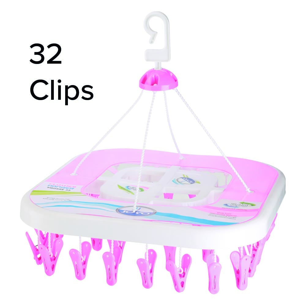 Joyo Plastic Cloth Drying Hanger with 32 Clips - Square Pink