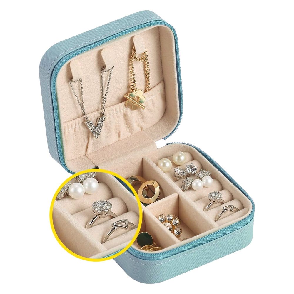 Karv Zipper Closer Faux Leather Jewellery Box - Small (Blue) 1 Unit