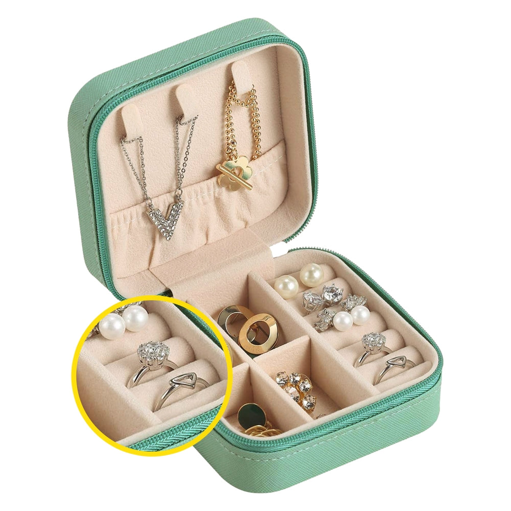 Karv Zipper Closer Faux Leather Jewellery Box - Small (Green) 1 Unit