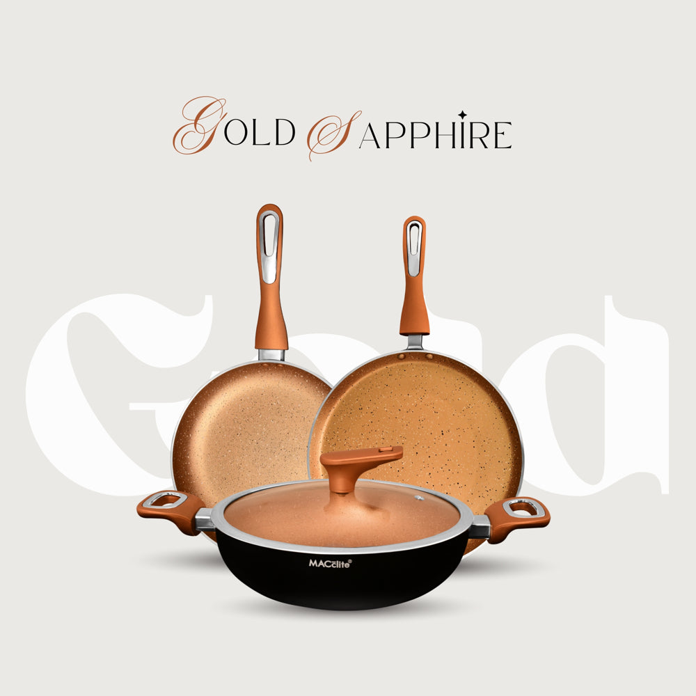 Macclite MYK Non-Stick Induction Base Gold Sapphire Set - Gold Set of 4