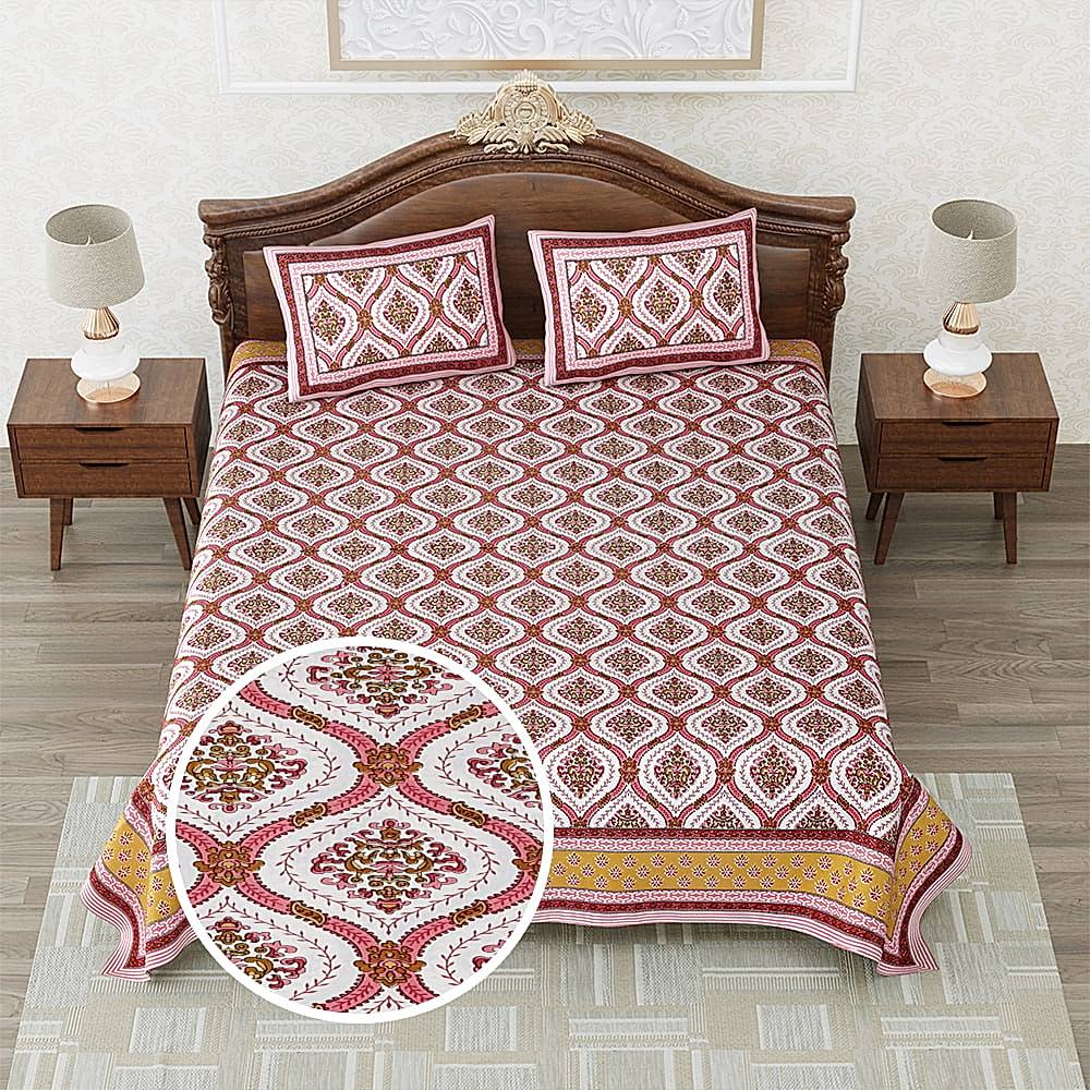 Description - Material : Cotton - Pattern : Floral - Thread Count : 144TC - Bedsheet Dimensions : 236 cm x 274 cm - Pillow Dimensions : 73 cm x 50 cm - Bedsheet Size : King Key Features - Pure Cotton - Breathable Fabric Pack Contents - Bedsheet : 1 Unit - Pillow Covers : 2 Units Benefits Beautiful bright prints enhance the feel of the room. Care Instructions - First Use : Wash separately - Wash Type : Hand wash or machine wash - Bleach : Do not use bleach - Dry : Line dry in shade - Dark Colours : Wash separately - Iron : On medium heat - Dry Clean : Do not dry clean About the Brand Mafatlals has a legacy of over 117 years, over a century of creating beautiful fabrics and supreme quality products. Established in 1905, Mafatlals is amalgam of ethic driven and quality conscious approach that infuses centuries of craftsmanship with contemporary design sensibilities. We strive to create quality at affordable price and this is the non-negotiable foundation for our business.