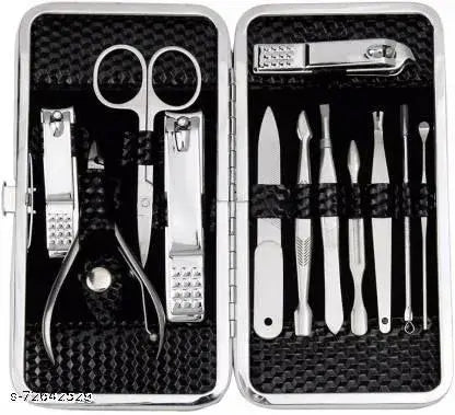 The Marvel Products Stainless Steel Manicure Kit is a premium all-in-one grooming set designed for nail care, personal hygiene, and precision grooming. Crafted from high-quality stainless steel, this durable and rust-resistant kit ensures long-lasting sharpness and effortless grooming. The elegant black travel case makes it perfect for both home and on-the-go use.
