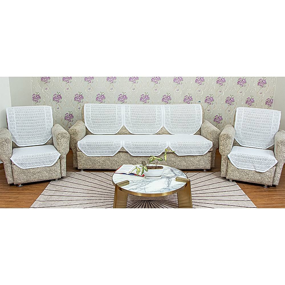Overview Elevate Your Living Room with MHF Galaxy Net Sofa Slipcovers : Experience the perfect combination of style, comfort, and practicality with MHF Galaxy Net Sofa Slipcovers. This set includes : One three-seater back cover, One three-seater seat cover, Two single-seater back covers, and Two single-seater seat covers. Specifically designed to fit a 5-seater (3+1+1) sofa set, our slipcovers ensure a snug and secure fit, so you can enjoy both the look and functionality.Made from premium-quality knitted net fabric, these slipcovers are built to last, offering exceptional durability. The elegant White colour adds a touch of sophistication to your home décor.Our products are not only stylish but also easy to maintain. They are hand-washable and reusable, making them a practical choice for any home. Whether you want to protect your new sofa or refresh the appearance of your existing one, our sofa covers offer an effortless and budget-friendly solution.More than just sofa covers, they are a promise of quality, functionality, and design. Don't miss the chance to transform your living room effortlessly – choose MHF Galaxy Net Sofa Slipcovers and protect your sofa set! Other Must Know Information MHF products are not only stylish but also easy to maintain. They are hand-washable and reusable, making them a practical choice for any home. Whether you want to protect your new sofa or refresh the appearance of your existing one, our sofa covers offer an effortless and budget-friendly solution. Product Details - Length : 178 cm - Width : 68 - Weight : 0.6 kg - Material : Polyester Knitted Net - Colour : White - Fit : 3+1+1 Pack Contents - Three Seater Back Cover : 1 Unit - Three Seater Seat Cover : 1 Unit - Single Seater Back Cover : 2 Units - Single Seater Seat Cover : 2 Units Care Instructions - Hand Wash Only