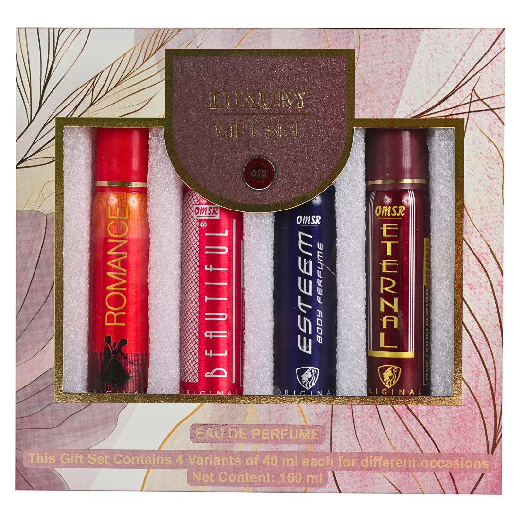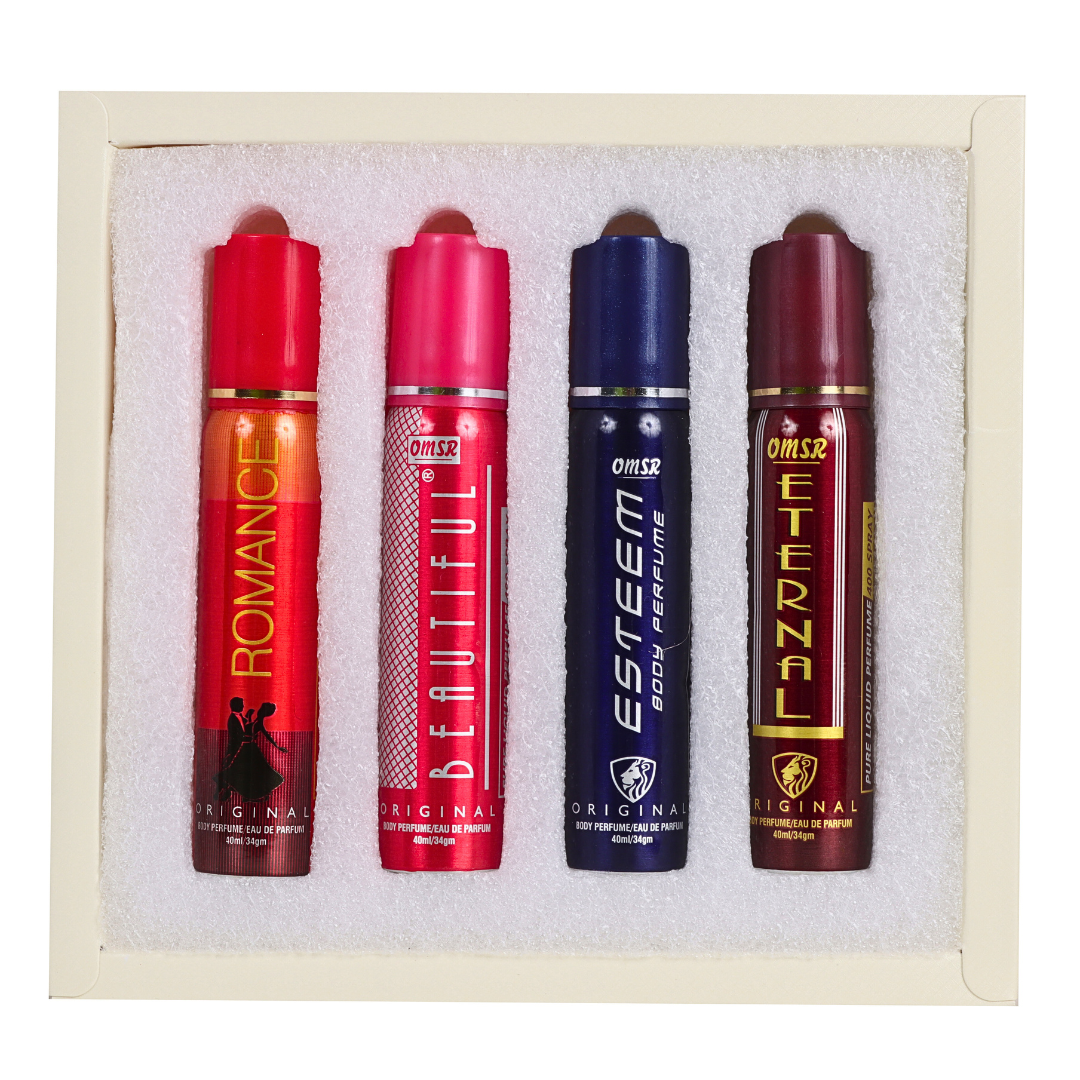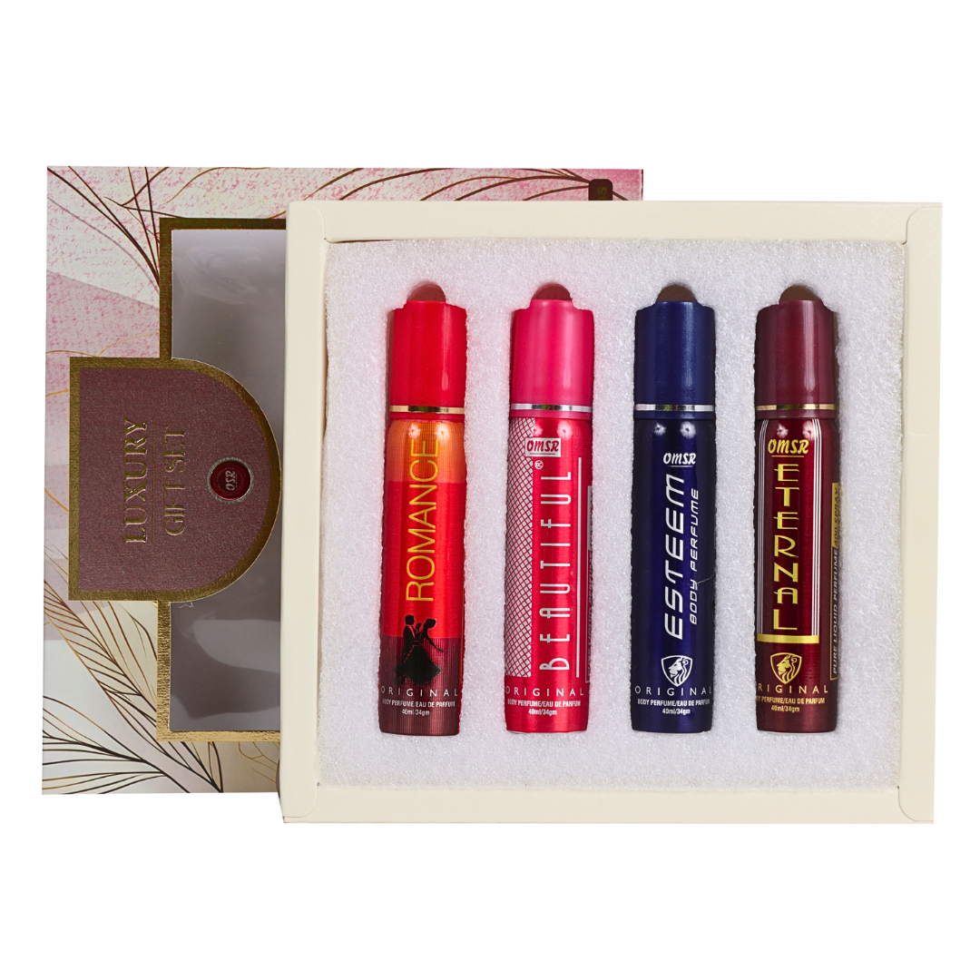 Searching for a gift that embodies love, sophistication, and luxury? The OSR Mini Perfume Gift Set from OSR International is a carefully selected assortment of four stunning fragrances: OSR Romance, OSR Beautiful, OSR Eternal, and OSR Esteem. Suitable for both men and women, this set provides a scent for every occasion, making it the perfect choice for fragrance enthusiasts. Whether you're indulging yourself or gifting someone special, these travel-sized mini perfumes will envelop you in an aura of elegance.