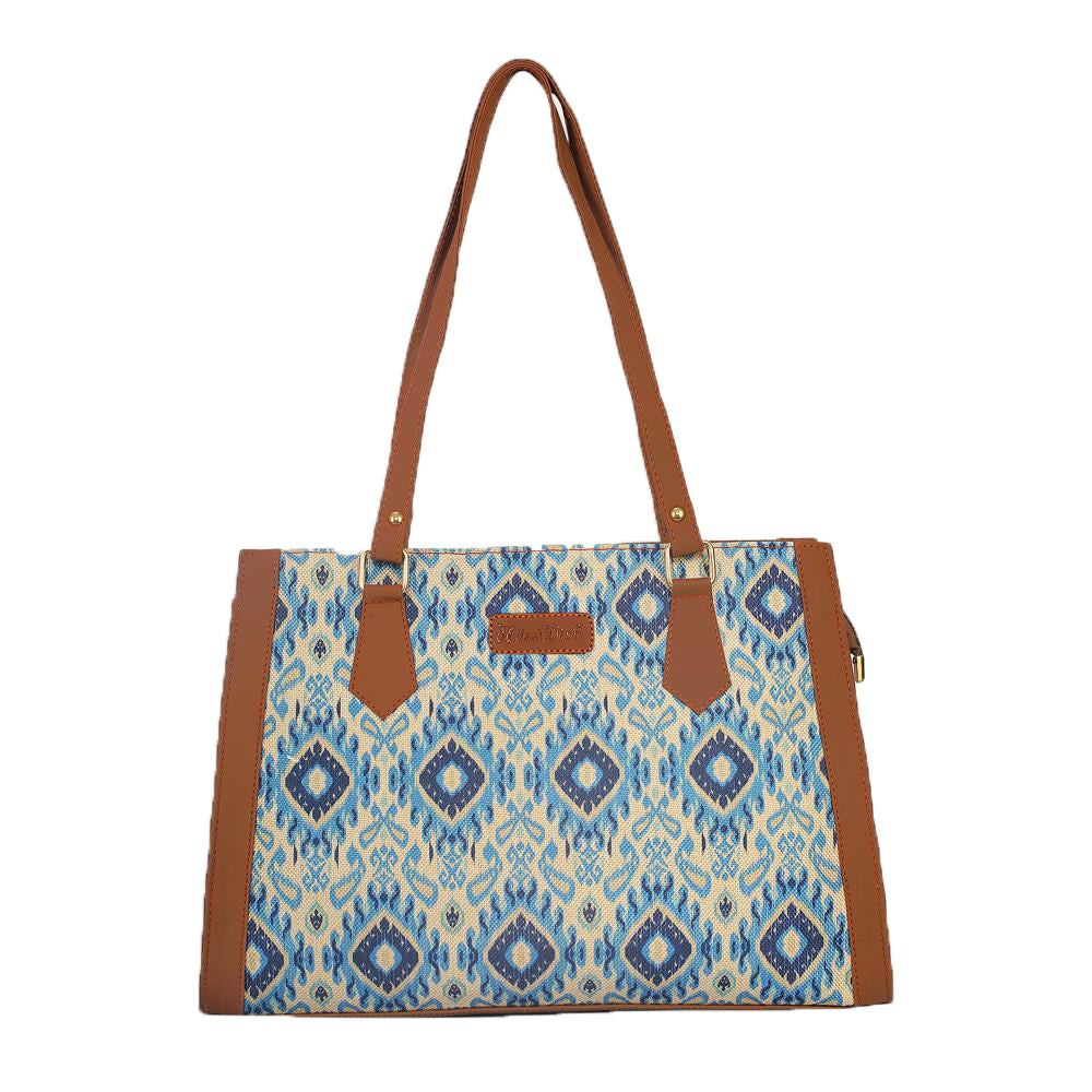 Product Details - Inner Material : polyester (water resistant) - Outer Material : Jute and vegan leather - Pattern : Printed - Colour :Blue - No. of Pockets : 4 - Weight : 400 gms - Dimension (LXWXH) : 34X11X27 cm - Shape : Rectangle - Closure Type : Zipper - Laptop Compatible : No - Warranty : No Key Features A purse, also known as a handbag, is a bag used to carry money, wallets, phones, and other daily essentials. Purses often feature a long strap or handle that you can rest on your shoulder or hold in your hand. How to Use Open the Zipper and put your items inside the bag. You can fit books, clothes, snacks, water bottles, wallets, keys, and more. Hold the handles and carry the bag over your shoulder or in your hand. Enjoy your day with this fashionable and functional bag. Any Other Must-Know Information The bag comes in assorted colours and designs. You will receive one of the available variants depending on the stock availability. Disclaimer While we work to ensure that the product information is correct, actual product packaging and material may contain more or different information from what is given here. Please read the product labels, description, directions, warning and other information that comes with the actual product before use. Care Instructions Wipe with a damp cloth. Do not bleach or iron the bag. Do not expose the bag to heat sources. Do not use harsh chemicals or abrasive materials to clean the bag. Store the bag in a cool and dry place when not in use About the Brand They take pride in the quality of their products. Each piece of hand bags undergoes rigorous testing to ensure its durability and longevity, making it a reliable choice for frequent users (Travellers). Plus, their commitment to sustainability means that their bags are made from eco-friendly materials, minimizing their impact on the environment.