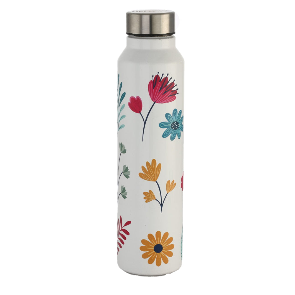 Nelcon Stainless Steel UV Printed & 3D Blomming Flowers Water Bottle 1 Litre