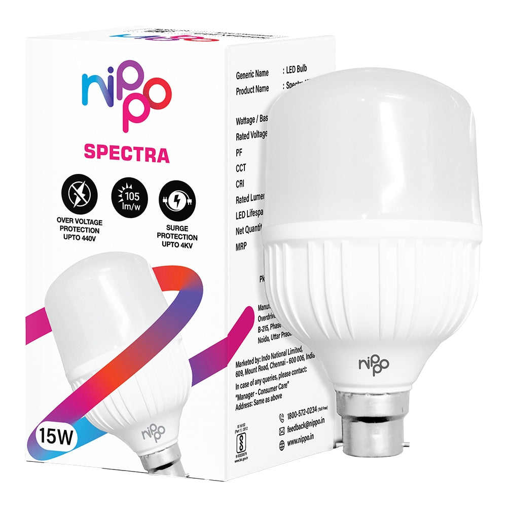 Product Highlights: High-efficiency 15W LED bulb – Optimal energy consumption. Eco-friendly design – Safe for the environment. Durable and long-lasting – Reduced need for replacements. Bright cool white light – Clear and comfortable illumination. High lumen output – 1575 lumens for superior brightness. Details from Manufacturer: Material: Polycarbonate Colour: Cool White Wattage: 15W Lumens: 1575 Weight:49g Dimension (in cm): 7.2 x 7.2 x 13.5 Key Features: Energy saving Eco-friendly Long life Pack Contents: 1 unit of LED bulb Care Instructions: Fragile; handle with care While we work to ensure that the product information is correct, actual product packaging and material may contain more or different information from what is given here. Please read the product labels, description, directions, warning and other information that comes with the actual product before use. Manufacturer Info : Manufacturer Name : Overdrive Manufacturer Address : B-15, Phase 2 Nagla, Dadri Road, Noida, UP -201305 Marketed By : Indo National Limited Marketer Address : 609, Mount Road, Chennai - 600 006 Customer Care Phone Number : 18005720234 Customer Care Email ID : feedback@nippo.in Country Of Origin : India
