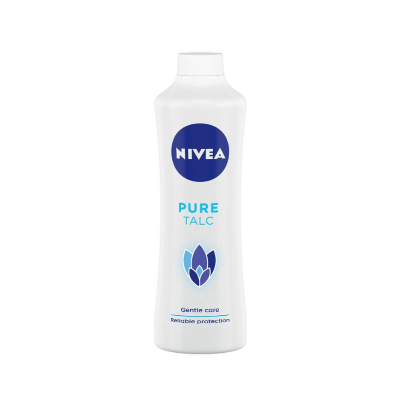 Nivea Talc Pure is the perfect combination of mild Nivea Care and reliable protection against body odour. Its gentle fragrance stimulates you and leaves you feeling refreshed and cared for. All day long.