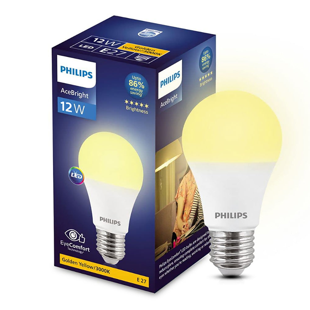Product Highlights: - Golden yellow colour - 12 W bulb, saves up to 86% energy - Dimensions: 6.1×6.1×11.4 cm - Comfortable for eyes - Stylish and bright lighting Details from Manufacturer: Material: Polycarbonate Wattage: 12W Key Features: Bulb, LED Bulb, 12W LED Bulb, Golden Yellow LED Bulb Pack Contents: Philips Acebright Led Bulb E27 Golden Yellow (12W):1 U While we work to ensure that the product information is correct, actual product packaging and material may contain more or different information from what is given here. Please read the product labels, description, directions, warning and other information that comes with the actual product before use. Manufacturer Info : Manufacturer Name : SIGNIFY INNOVATIONS INDIA LIMITED Manufacturer Address : Signify Innovations India Ltd., (Registered Office) PS Arcadia Central, 3A, 3rd Floor, 4A, Abanindranath Thakur Sarani (Camac Street), Kolkata-700017, West Bengal, India Customer Care Phone Number : 000-800-050-7777 Customer Care Email ID : customercare_ecolinklighting@signify.com Country Of Origin : India