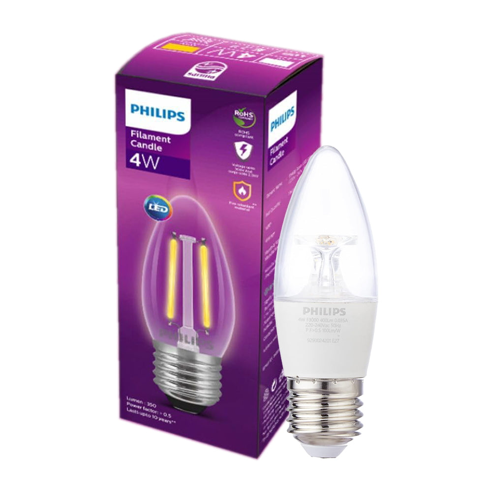 Philips Filament Clear Candle LED Bulb E27 Warm 350 Lumen White 4 W 1 Unit