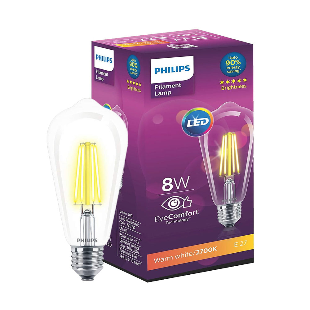 Product Highlights: - Comfortable for eyes - Warm white colour - 8 W bulb, 700 lumen - Saves up to 90% energy - Dimensions: 7×7×15.2cm Details from Manufacturer: Material: Polycarbonate Wattage: 8W Weight: 0.077 gm Key Features: LED Bulb, Filament LED Bulb, 8W LED Bulb Pack Contents: Philips Filament Led Bulb ST64 2700K Warm White (8W):1 U While we work to ensure that the product information is correct, actual product packaging and material may contain more or different information from what is given here. Please read the product labels, description, directions, warning and other information that comes with the actual product before use. Manufacturer Info : Manufacturer Name : SIGNIFY INNOVATIONS INDIA LIMITED Manufacturer Address : Signify Innovations India Ltd., (Registered Office) PS Arcadia Central, 3A, 3rd Floor, 4A, Abanindranath Thakur Sarani (Camac Street), Kolkata-700017, West Bengal, India Customer Care Phone Number : 000-800-050-7777 Customer Care Email ID : customercare_ecolinklighting@signify.com Country Of Origin : India