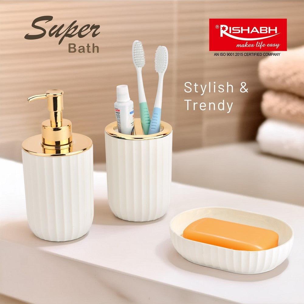 Rishabh Superbath Stylish Bathroom Accessories Set - White Set of 3