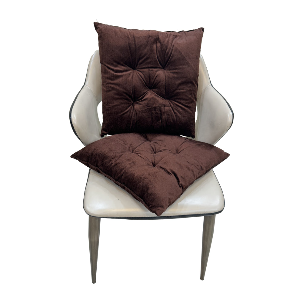 Product Highlights: - Enhances comfort for prolonged sitting. - Reversible design for versatile use. - Secure button feature to avoid slipping. - Easy to clean with machine wash. - Elegant brown colour fits various styles. Details from Manufacturer: Material: Outer: Velvet Fabric :Inner: Polyfill Weight: 650 grams Shape: Square Dimensions: 40 cm x 40 cm Wash Care: Easy machine washable. Wash dark colours separately. Do not use bleach. Do not iron or dry clean. Key Features: - Ideal for dining, office, or car seating. - Soft and cosy fillings for added comfort. - 5 buttons for secure placement. - Durable design for everyday use. - Stylish accessory for any seating area. Pack Content: Set of 2 cushions.