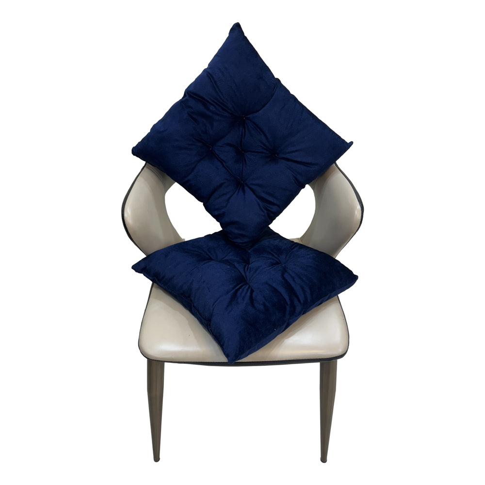 Product Highlights: - Comfort-enhancing cushions for any seating. - Reversible for dual functionality. - Features secure buttons to prevent sliding. - Machine washable for easy care. - Rich navy blue colour enhances decor. Details from Manufacturer: Material: Outer: Velvet Fabric :Inner: Polyfill Weight: 650 grams Shape: Square Dimensions: 40 cm x 40 cm Wash Care: Easy machine washable. Wash dark colours separately. Do not use bleach. Do not iron or dry clean. Key Features: - Versatile use for different chair types. - Soft and comfortable fillings. - 5 buttons to keep cushions secure. - Durable for regular use. - Attractive navy blue finish. Pack Content: Set of 2 cushions.