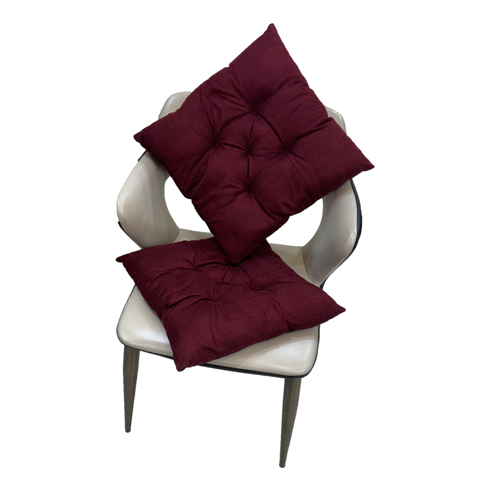 Product Highlights: - Perfect for enhancing comfort on any chair. - Reversible design for extended use. - Equipped with secure buttons to prevent slipping. - Easy to maintain with machine washable fabric. - Stylish wine colour complements various interiors. Details from Manufacturer: Material: Outer: Velvet Fabric :Inner: Polyfill Weight: 650 grams Shape: Square Dimensions: 40 cm x 40 cm Wash Care: Easy machine washable. Wash dark colours separately. Do not use bleach. Do not iron or dry clean. Key Features: - Versatile use for dining, office, or car seats. - Extra soft fillings for comfort. - 5 buttons for stability during use. - Durable and long-lasting for everyday comfort. - Stylish addition to home or office decor. Pack Content: Set of 2 cushions.