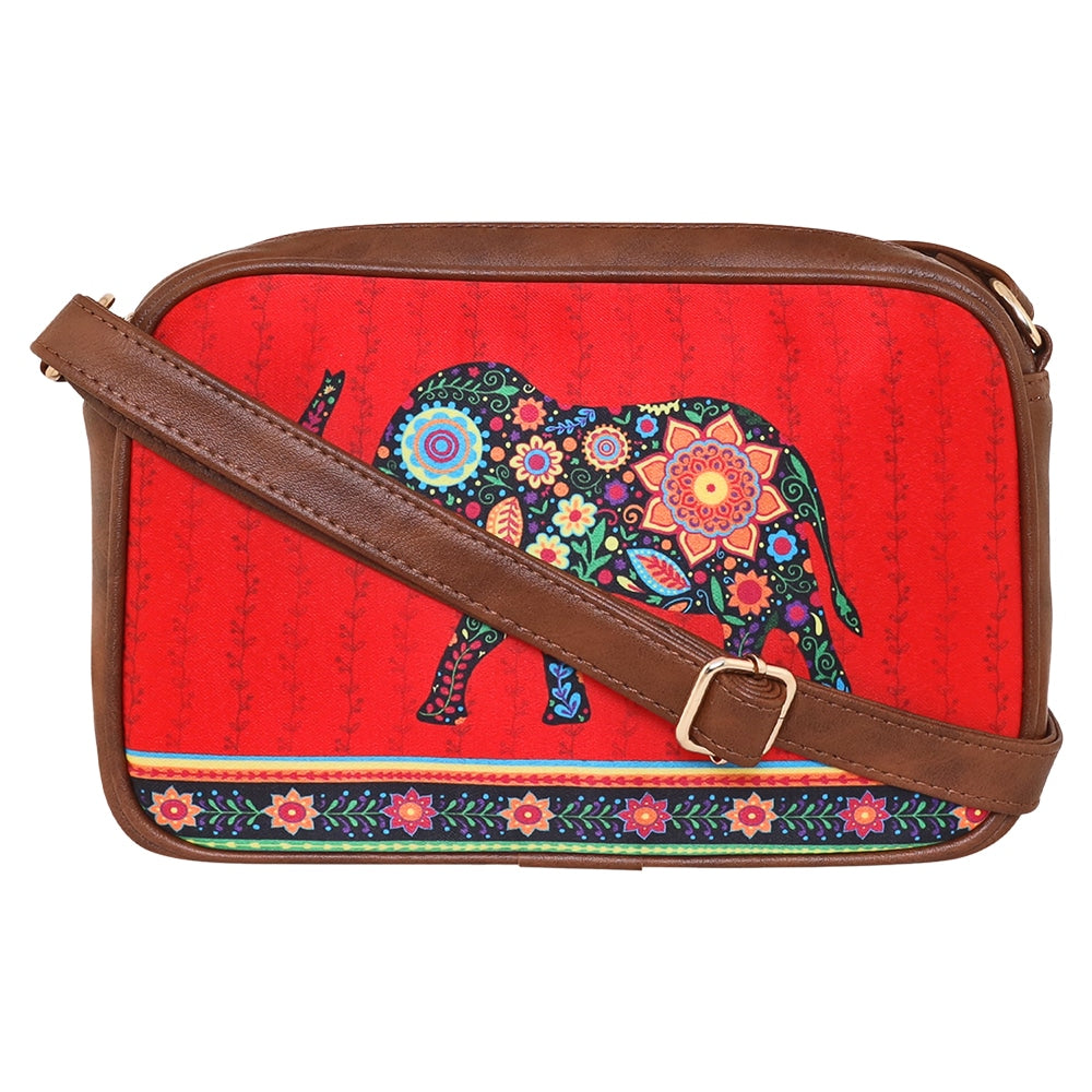Sabhyata Elephant Design SS07-04 Sling Bag (Red) 1 Unit