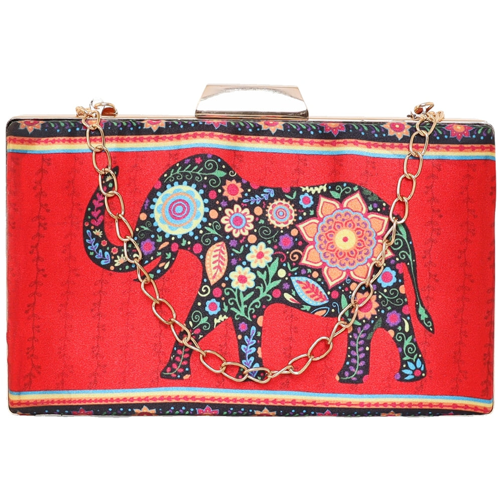 Product Highlights: - Bold Red Colour: Eye-catching and vibrant. - Compact Size: Easy to carry on the go. - Metal Clutch: Adds sophistication for events. - Cultural Motif: Features a striking elephant design. - Durable Material: Resilient and stylish satin. Details from Manufacture: Internal Material: Polyester External Material: Satin Colour: Red Weight: 350 gm Capacity: 0.35 kg Size: Small Pattern/Design: Ethnic Type of Leather: NA Internal Dimensions: 20 cm x 3 cm x 12 cm External Dimensions: 20 cm x 3 cm x 12 cm Number of Compartments: 1 Closure Type: Clasp Key Features: Compact size, metal clutch, party look About the Brand: Sabhyata is celebrated for its traditional Indian designs, offering a wide array of vibrant bags and accessories.