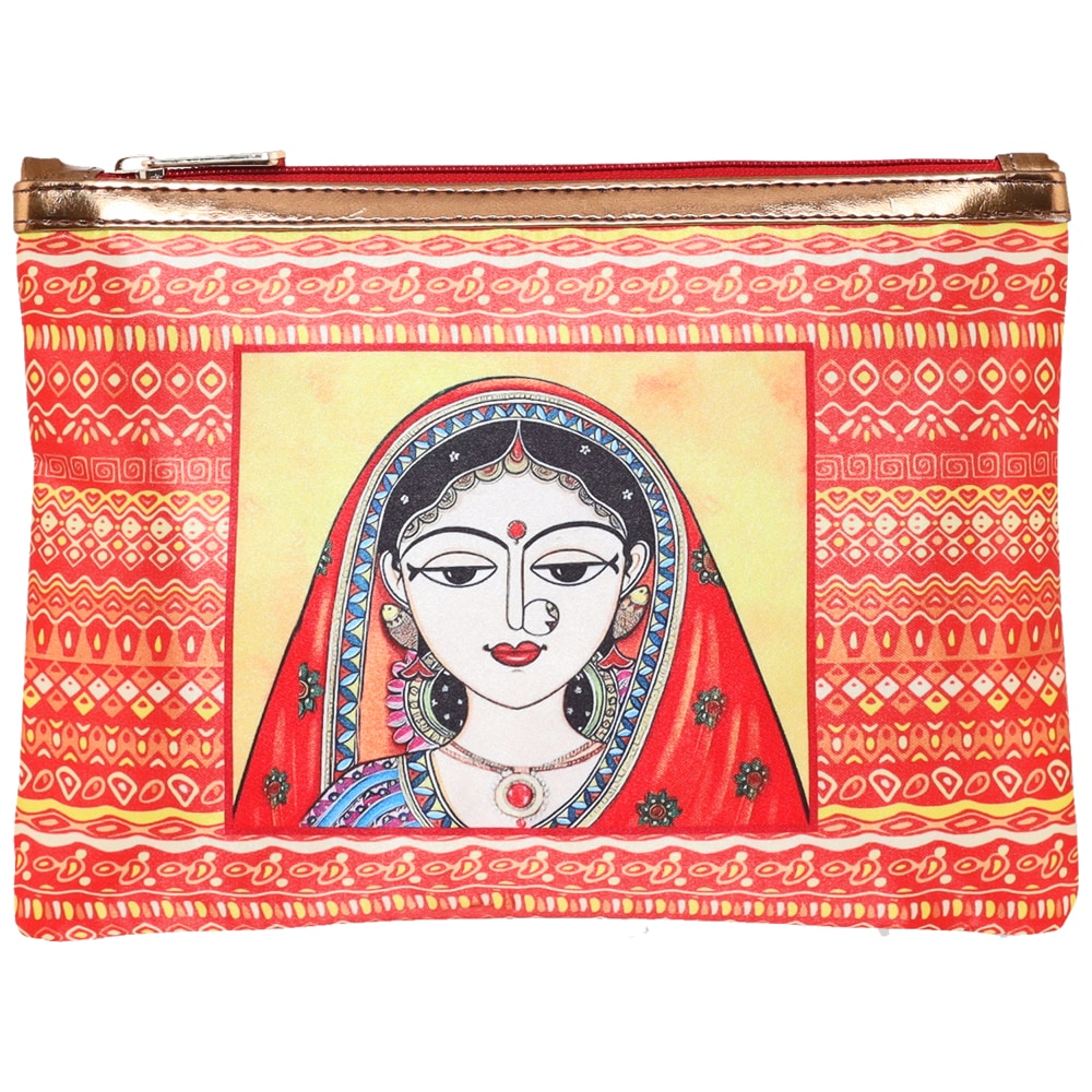 Sabhyata Ghunghat Lady Design Multipurpose Pouch (SP1-01) - Orange 1 Unit
