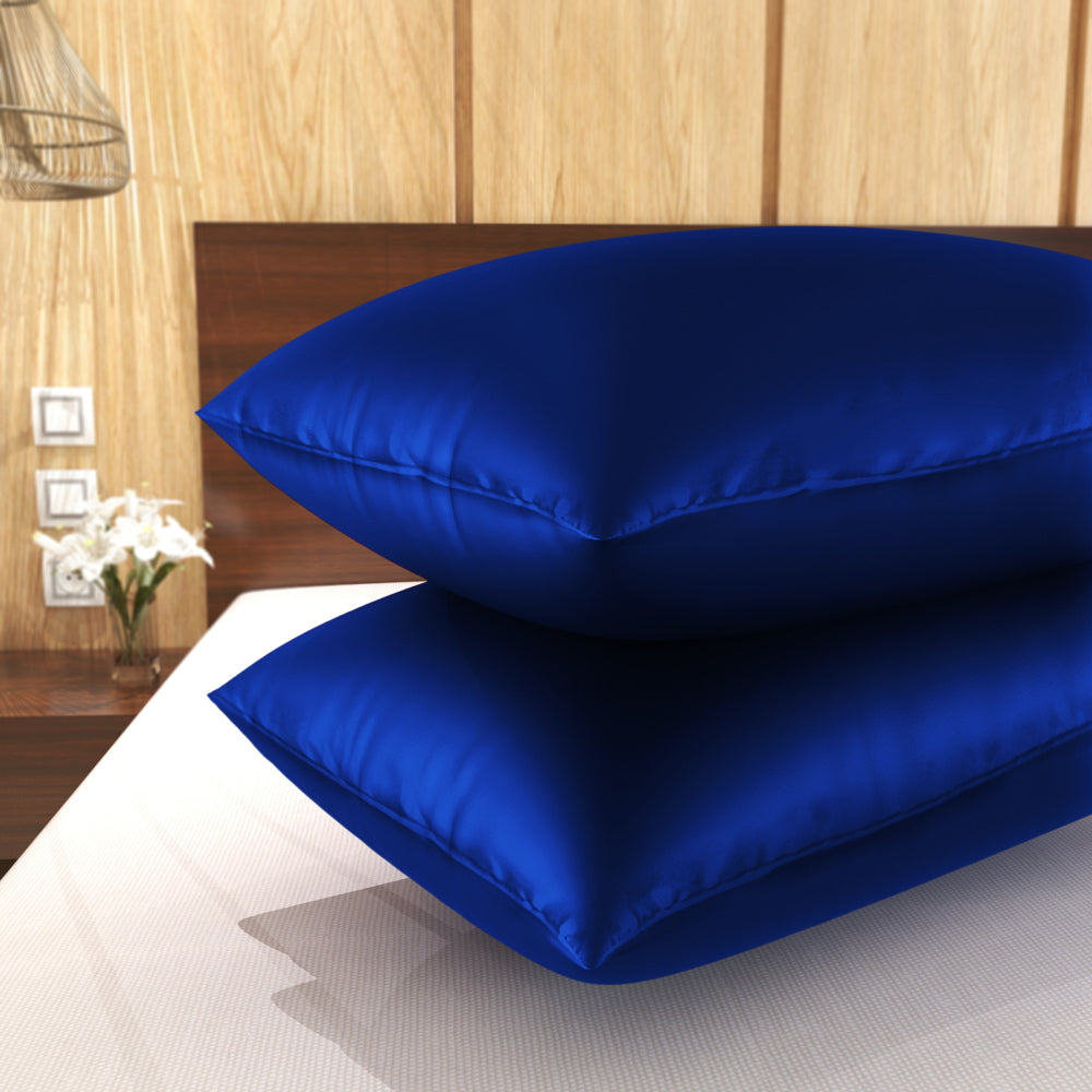 Product Highlights: - 100% Polyester Satin Silk Material for Durability - Soft and Hair-Friendly, Prevents Split Ends - Fade-Resistant and Shrink-Resistant - No Zipper Design for Comfort and Convenience - Available in Multiple Colours Details from Manufacturer: Material: 100% Polyester Satin Silk Colour: Blue Pattern: Solid GSM: 110 Weight: 60 grams Dimensions: 43.18 cm (L) x 68.58 cm (W) Pack Content: 2 Pillow Covers Key Features: No Zipper, Fresh and Modern Expression Soft & Cozy, Hair-Friendly Shiny and Smooth Finish Shrink-Resistant and Fade-Resistant Decorative and Cooling Effect Benefits : Protects Delicate Hair: Prevents scratches, creases, and tugs, reducing split ends. Restorative Beauty Sleep: Ensures a night of restorative beauty sleep. Durable and Sturdy: Made from high-quality satin silk, more durable than regular silk pillowcases. Comfortable and Stylish: Offers a smooth, comfortable surface while maintaining a sleek appearance. Easy Maintenance: Machine washable, designed for long-lasting use. Frequently Asked Questions: Q: Does the satin pillow cover fade or shrink? A: No, the pillow cover is fade-resistant and shrink-resistant. Care Instructions: Easy Care: Turn the satin pillowcase inside out, place it inside a mesh laundry bag, and wash with a mild detergent. Machine washable.