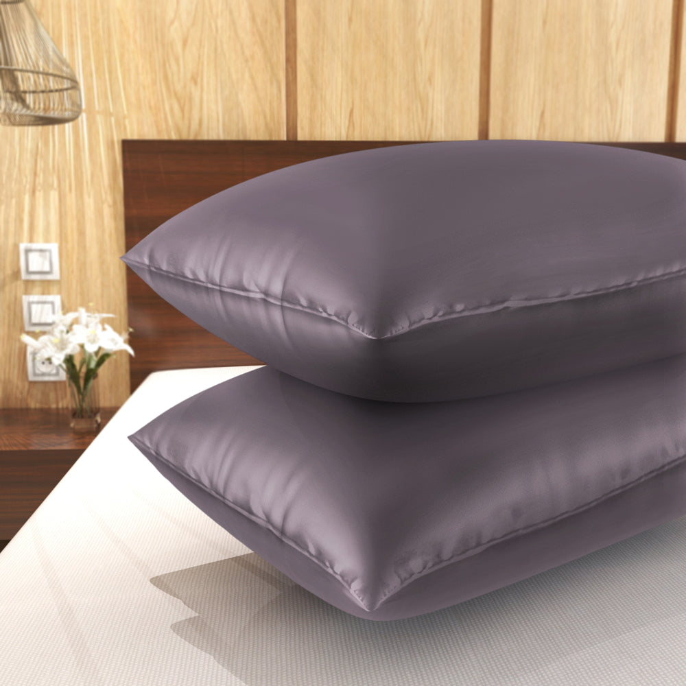 Product Highlights: - 100% Polyester Satin Silk Material for Durability - Soft and Hair-Friendly, Prevents Split Ends - Fade-Resistant and Shrink-Resistant - No Zipper Design for Comfort and Convenience - Available in Multiple Colours Details from Manufacturer: Material: 100% Polyester Satin Silk Colour: Light Plum Pattern: Solid GSM: 110 Weight: 60 grams Dimensions: 43.18 cm (L) x 68.58 cm (W) Pack Content: 2 Pillow Covers Key Features: No Zipper, Fresh and Modern Expression Soft & Cozy, Hair-Friendly Shiny and Smooth Finish Shrink-Resistant and Fade-Resistant Decorative and Cooling Effect Benefits Protects Hair: Reduces hair damage like scratches and split ends. Restful Sleep: Promotes better sleep by providing a smooth, soft surface. Long-Lasting Durability: Stronger and more durable than traditional silk pillowcases. Beautiful and Comfortable: Maintains an elegant look while offering comfort. Simple Care: Easy to clean and maintain for prolonged use. Frequently Asked Questions: Q: Does the satin pillow cover fade or shrink? A: No, it is designed to be fade-resistant and shrink-resistant. Care Instructions: Easy Care: Turn the satin pillowcase inside out, place it inside a mesh laundry bag, and wash with a mild detergent. Machine washable.
