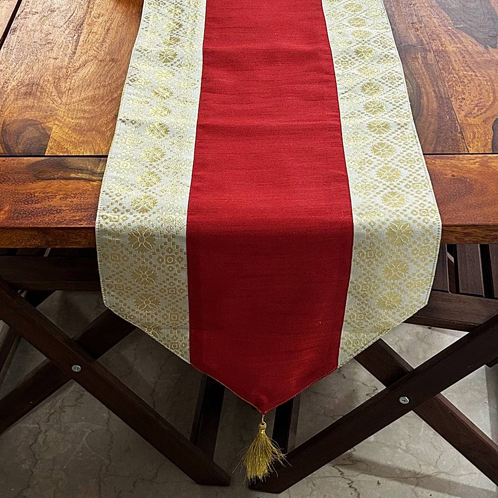 Shades Pink Parrot Polyster Table Runner (Maroon & Beige) - 30 x 177 cm 1 Unit