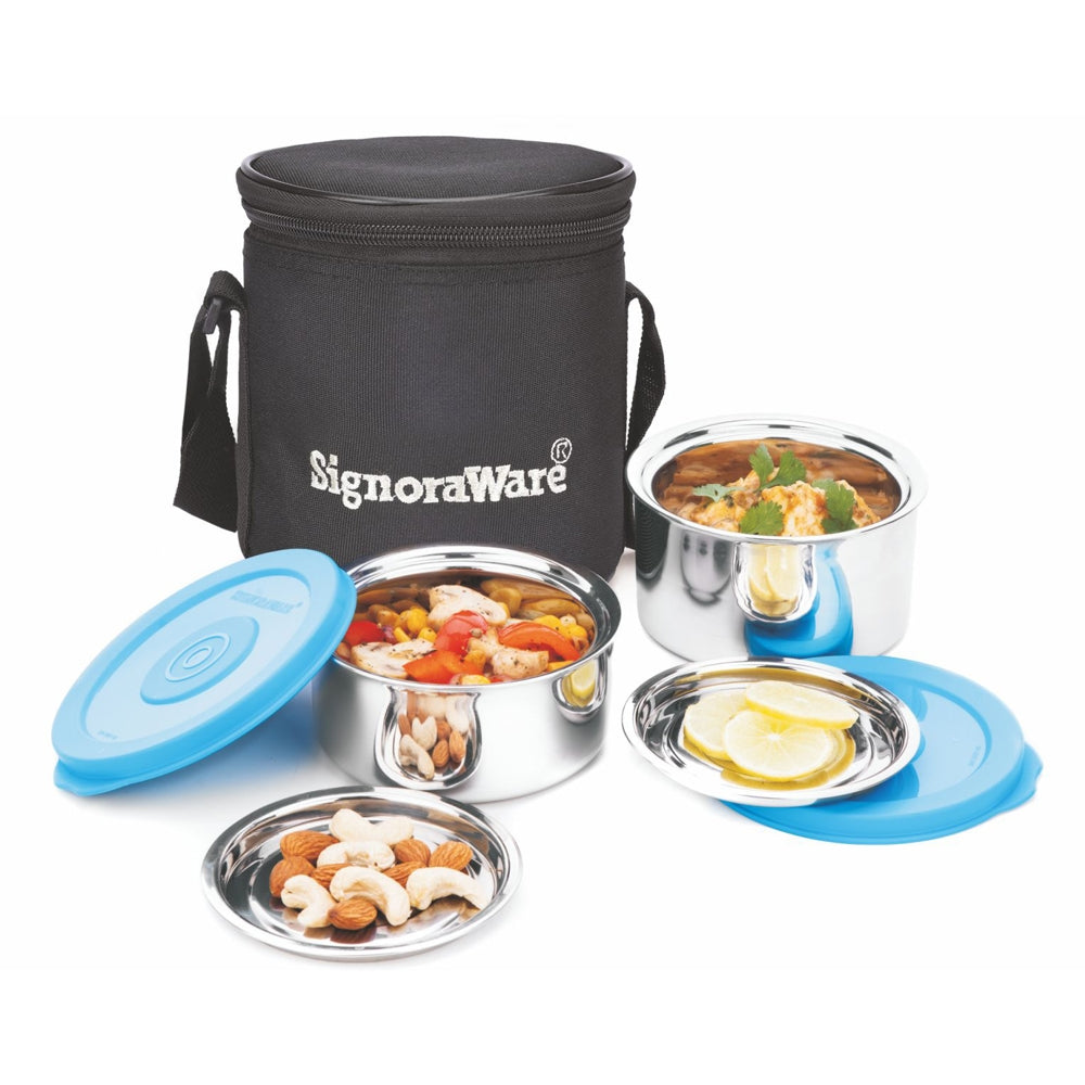 SignoraWare Twinwall Executive Small Steel Lunch Box - Blue 2 Containers