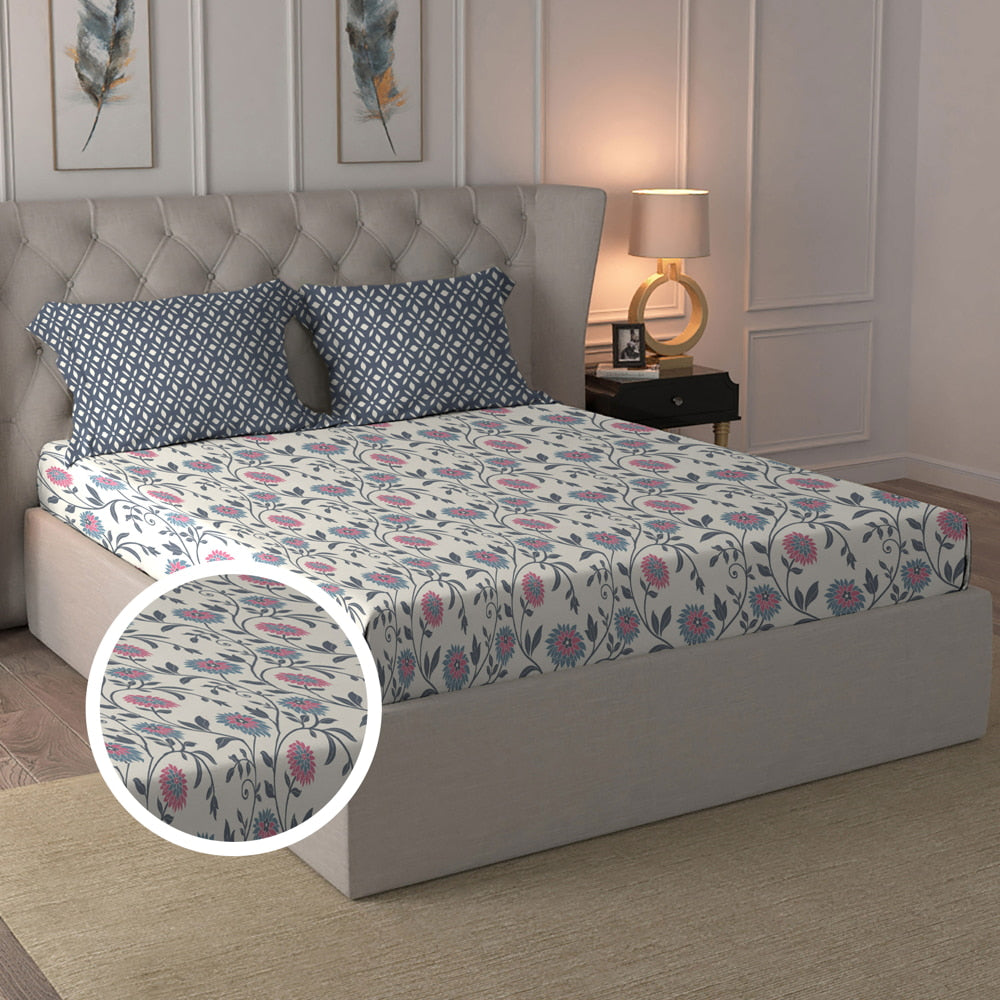 Details from Manufacturer: - Colour: Grey - Pattern: Floral - Size: Queen Size - Bed sheet size: 228x254cm - Pillow Size: 46x69cm - Package contains: 2 pillow covers and 1 bed sheet - Material: 100% cotton Overview: The Trident Comfort Living Double Bed Sheet is crafted with a 120-thread count fabric, delivering a smooth and breathable texture for a restful night’s sleep. Its classic design and high-quality construction make it a great addition to any bedroom decor. This bed sheet fits double-sized beds, providing ample coverage while maintaining its shape and colour over time. Key Features: - 120 Thread Count: Soft and lightweight fabric, offering comfort and breathability. - Double Bed Size: Designed to fit standard double beds perfectly. - Durable Construction: High-quality stitching ensures long-lasting use and retains shape wash after wash. - Easy to Care For: Machine washable, colourfast, and wrinkle-resistant for low-maintenance care. - Elegant Design: Available in a variety of colours and patterns to complement different bedroom styles. Material Used: - 100% Cotton or a cotton blend (depending on the variant), providing a soft and breathable texture. How to Use: Spread the bed sheet evenly over your double bed, ensuring it covers the mattress fully. Tuck the edges neatly under the mattress for a smooth and snug fit. For best results, wash the sheet before first use to enhance softness. Benefits: - Comfortable Sleep: The 120-thread count fabric offers a balance of softness and breathability, ensuring a comfortable and cool sleep environment. - Durable and Long-Lasting: The sturdy construction ensures the bed sheet holds up well to regular washing and daily use. - Stylish and Versatile: Available in a range of colours and patterns, it adds a fresh, elegant look to your bedroom decor. - Easy Maintenance: The sheet is machine washable and retains its colour and texture over time, ensuring low-maintenance care. - Affordable Luxury: Offers a premium feel at an affordable price, perfect for everyday use. Other Must-Know Information: The bed sheet comes with pillow covers, offering a complete bedding solution. The fabric may feel slightly stiff upon first use but softens after washing. Ideal for regular home use or as a guest room essential. For best use, wash separately on first use. Do not use bleach. Iron on medium heat. Do not dry clean Storage Instruction: Store in a cool, dry place away from direct sunlight to prevent fading. Fold neatly and store with other bedding items to keep it clean and ready for use. Use a linen closet or drawer to maintain freshness. Frequently Asked Questions : Q. What is the thread count of this bed sheet? A. The Trident Comfort Living Double Bed Sheet has a 120-thread count, providing softness and breathability. Q. Will the colour fade after washing? A. No, the fabric is colourfast and designed to retain its vibrant colours even after multiple washes. About the Brand: Trident is widely recognized for its expertise in the textile sector, particularly in producing towels, bed sheets, and yarn. It is one of the largest manufacturers of terry towels in the world and a leading player in the home textiles market.