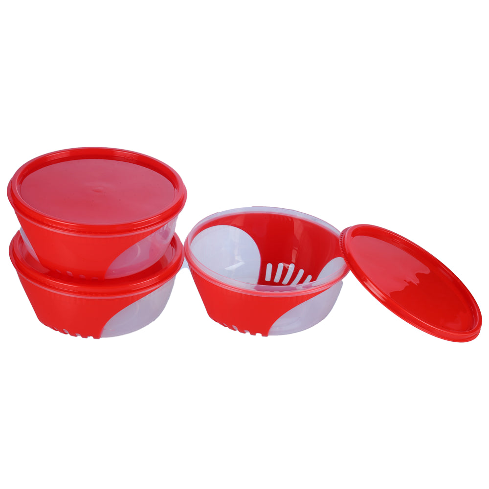 Unica 2K Round Storage Container (Red) - 1.15 L (Set of 3) 1 Unit